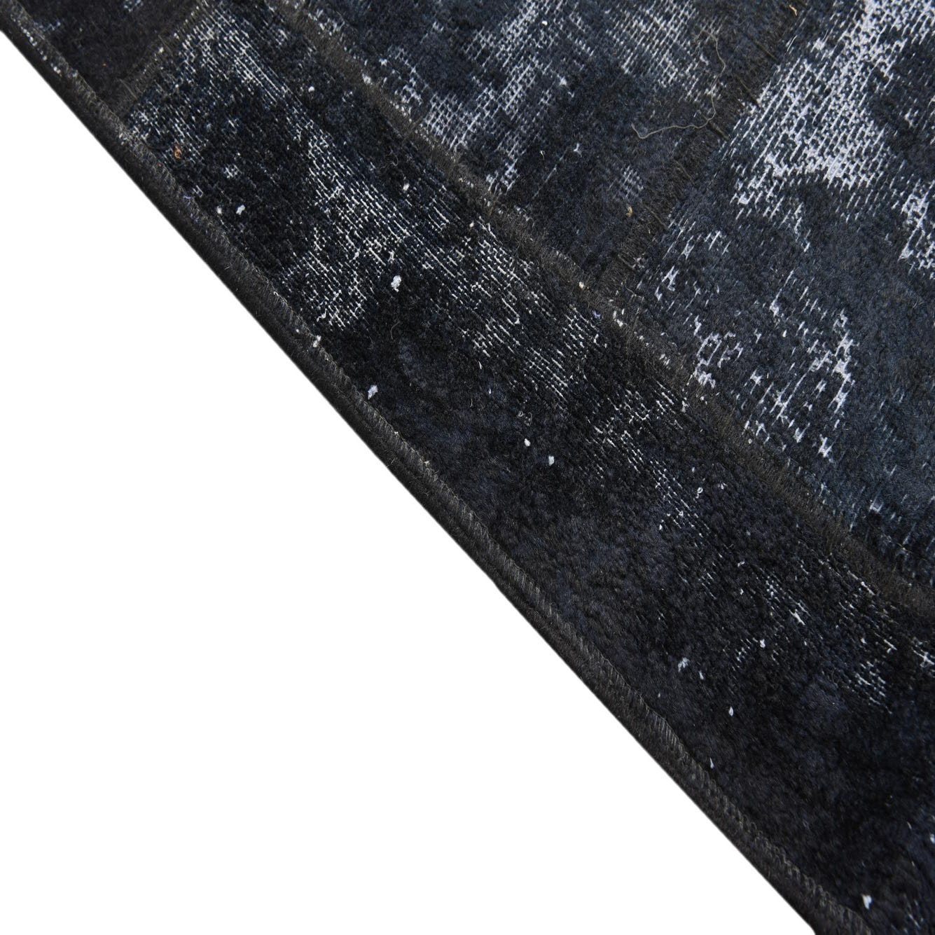 The rug's visual texture adds a layer of sophistication and could anchor a variety of interior design styles. It would be at home in an industrial loft, where its dark tones and distressed pattern complement exposed brick and metal finishes. Equally, it could serve as a statement piece in a minimalist setting, providing a subtle yet impactful design element that does not overwhelm the space. In a traditional setting, the rug's vintage quality will blend harmoniously with antique furnishings, while its modern edge keeps the space current.