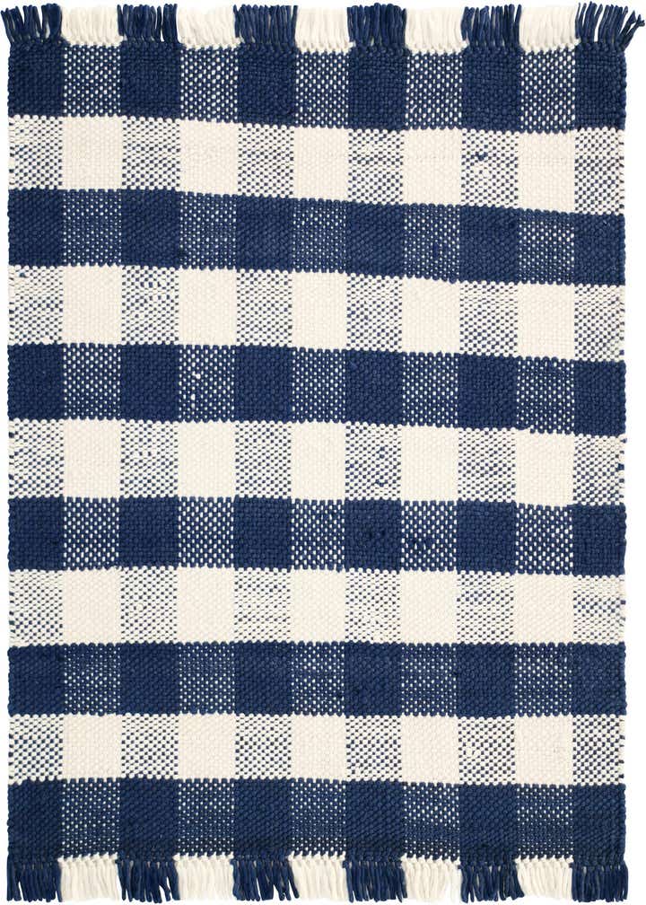 Primary color is Navy Blue. Colors in this rug include: Navy Blue, Ivory.