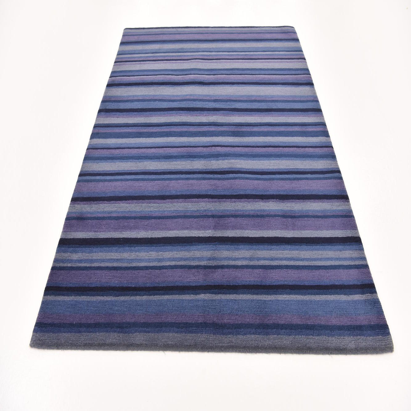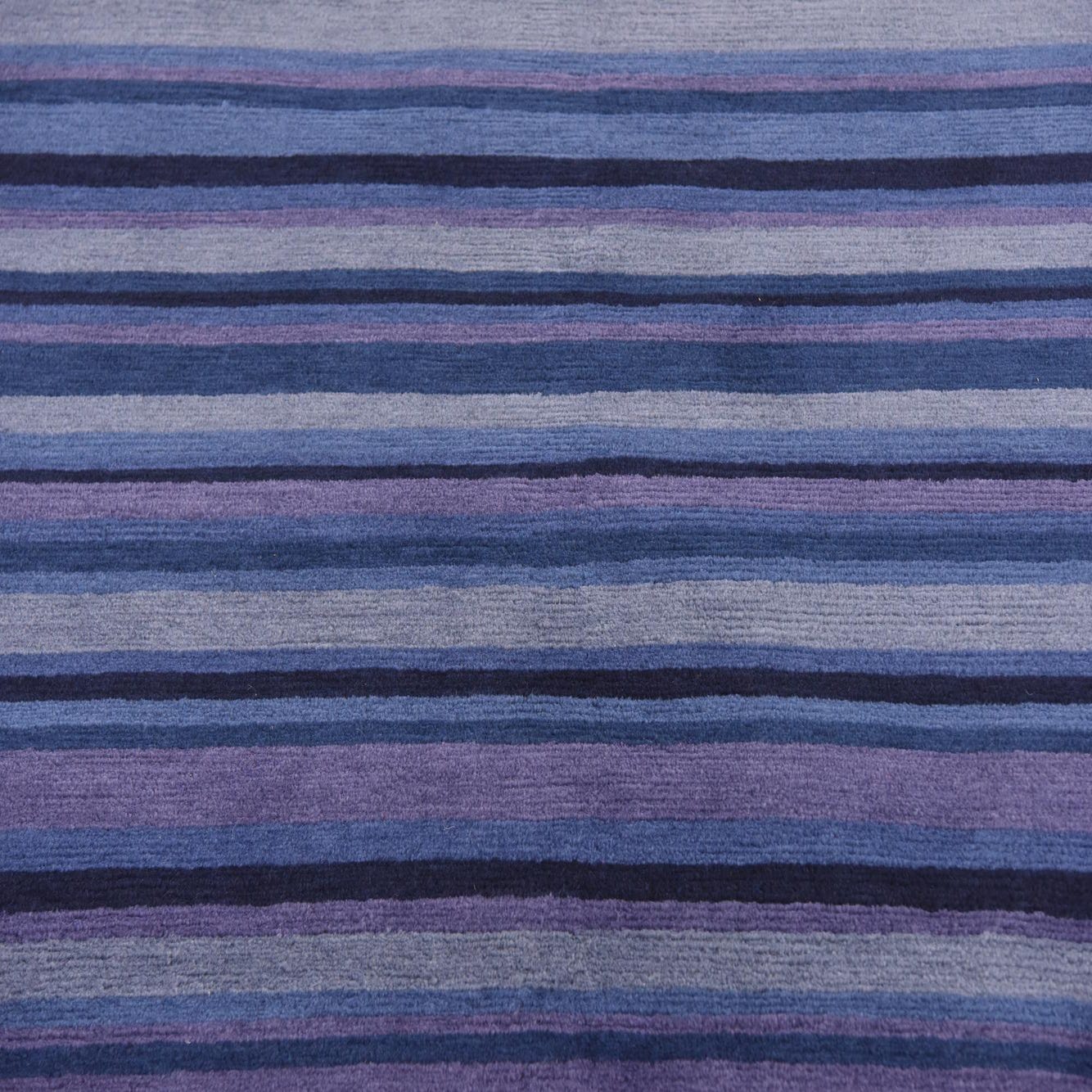 A 5x7 rectangular Nepal rug featuring horizontal stripes in varying shades of blue, navy, and subtle grey.