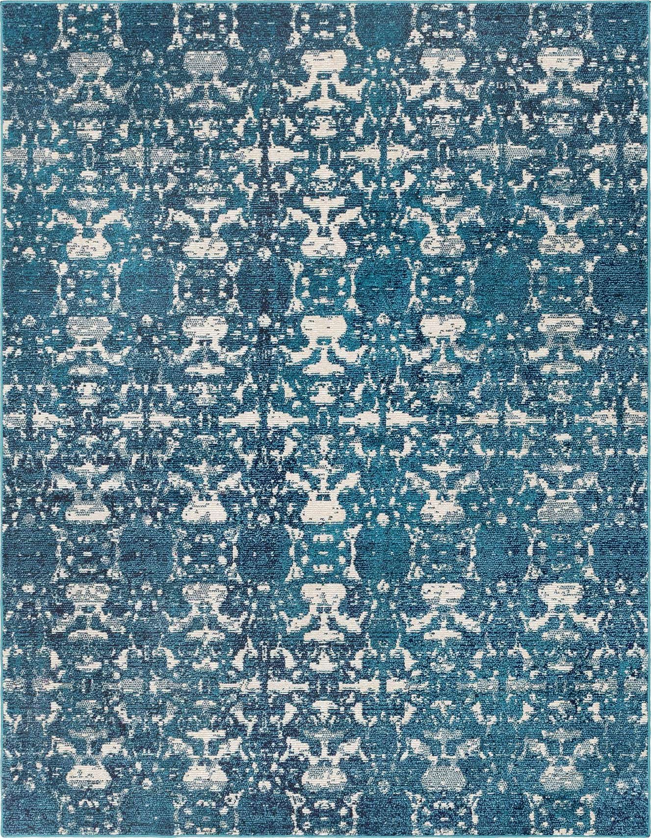 Primary color is Navy Blue. Colors in this rug include: Navy Blue, Beige, Ivory, Teal.