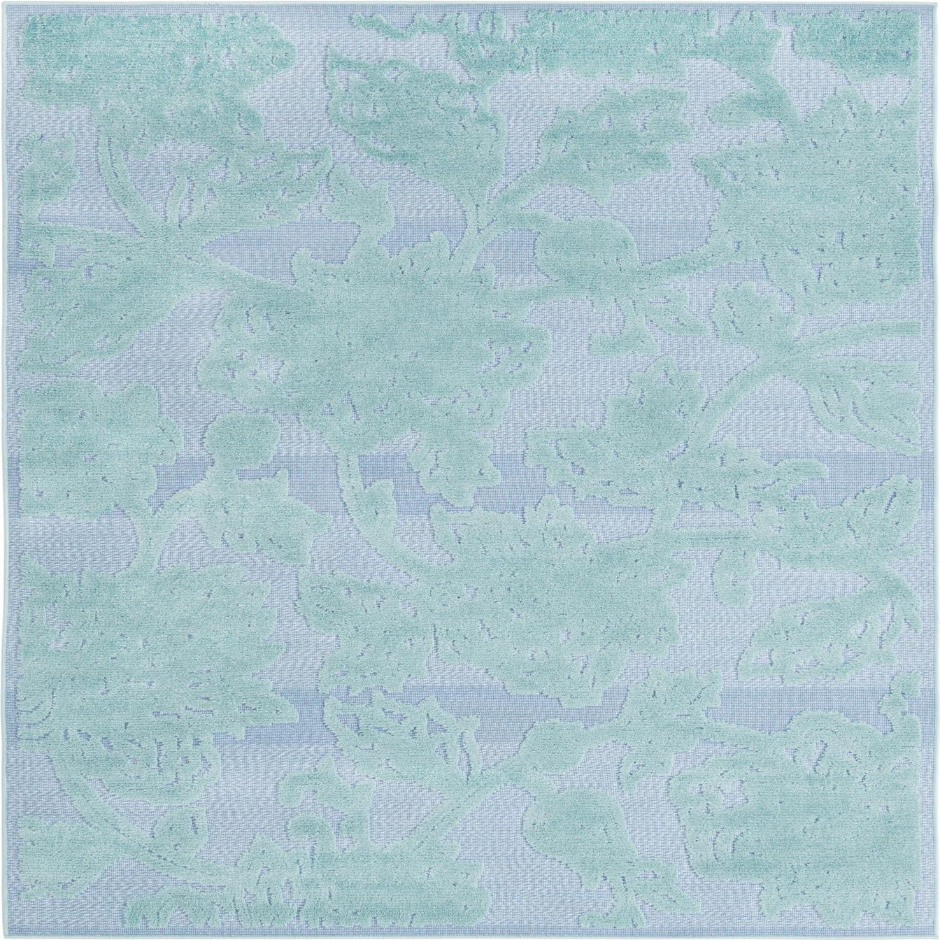 A 5x8 rectangular indoor/outdoor rug featuring a raised botanical pattern in varying shades of blue, ideal for a living room or patio.