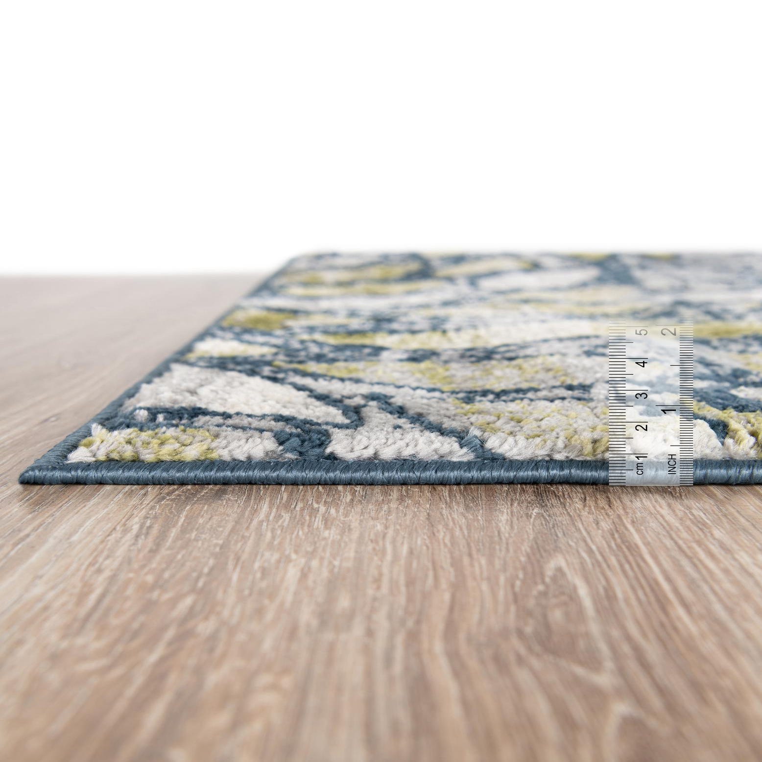 This contemporary-transitional piece works well in a variety of interiors: place it under a neutral sofa to anchor a living room, beneath a dining table to complement light-wood furniture, or layer it at the foot of the bed in a bedroom for added pattern and color. The clear navy base and pops of ivory and green coordinate with coastal, modern farmhouse, and modern eclectic schemes, and the tactile polypropylene construction makes it a practical choice for everyday spaces like family rooms, entryways, or a home office seating area.