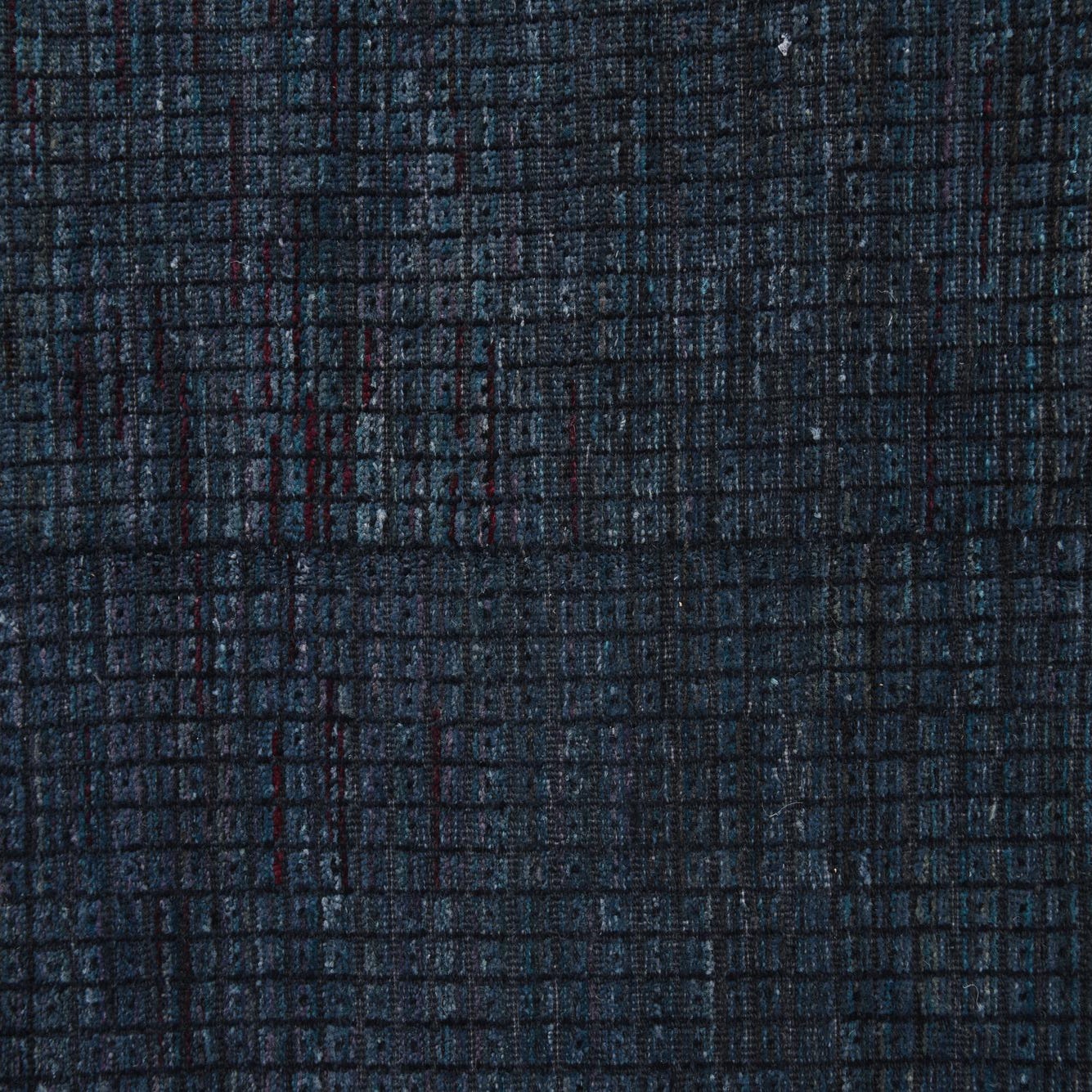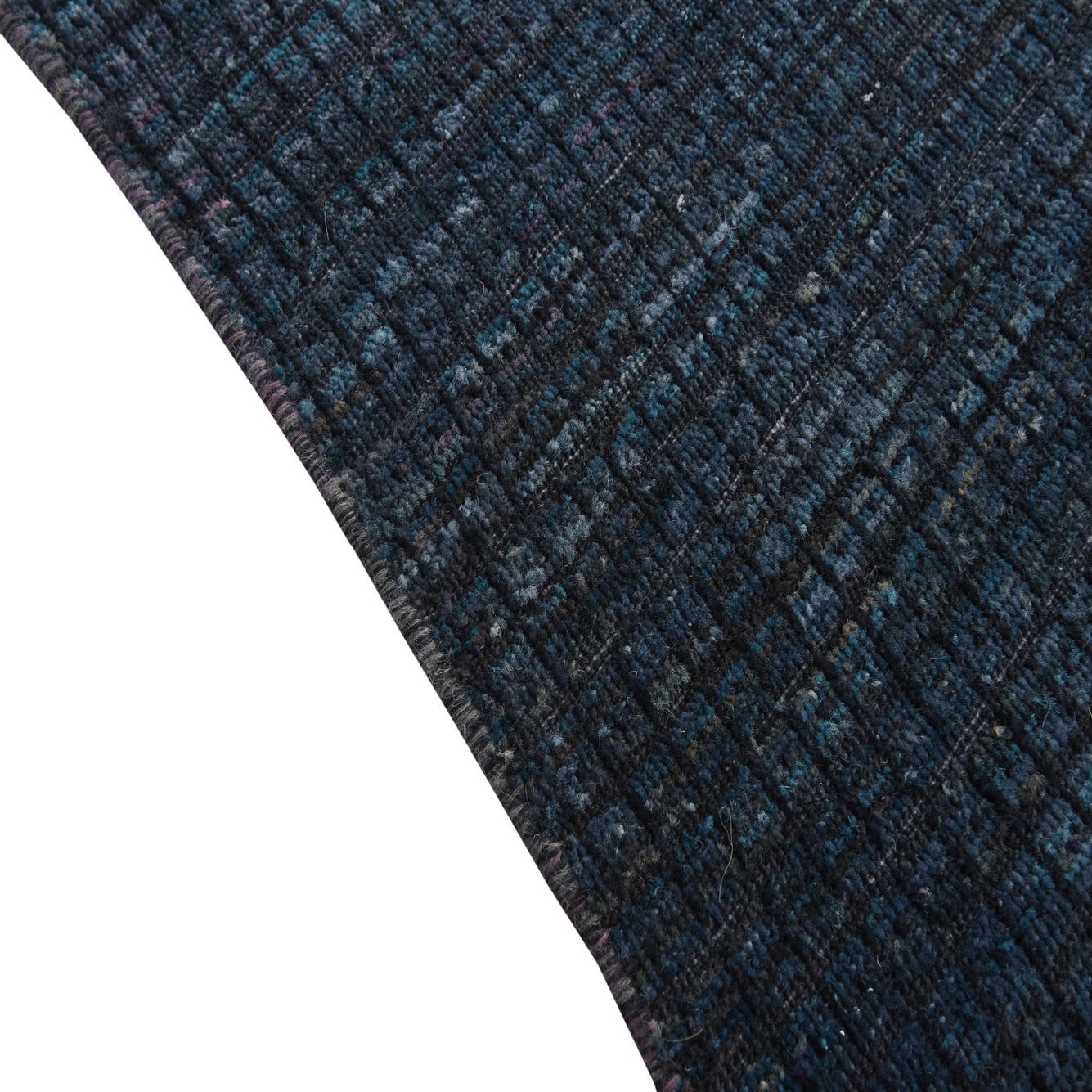 A 5x8 rectangular Darya rug in deep navy blue wool with a subtle modern grid texture, suitable for a living room.