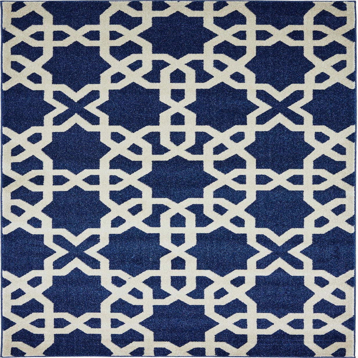Primary color is Navy Blue. Colors in this rug include: Navy Blue, Beige.
