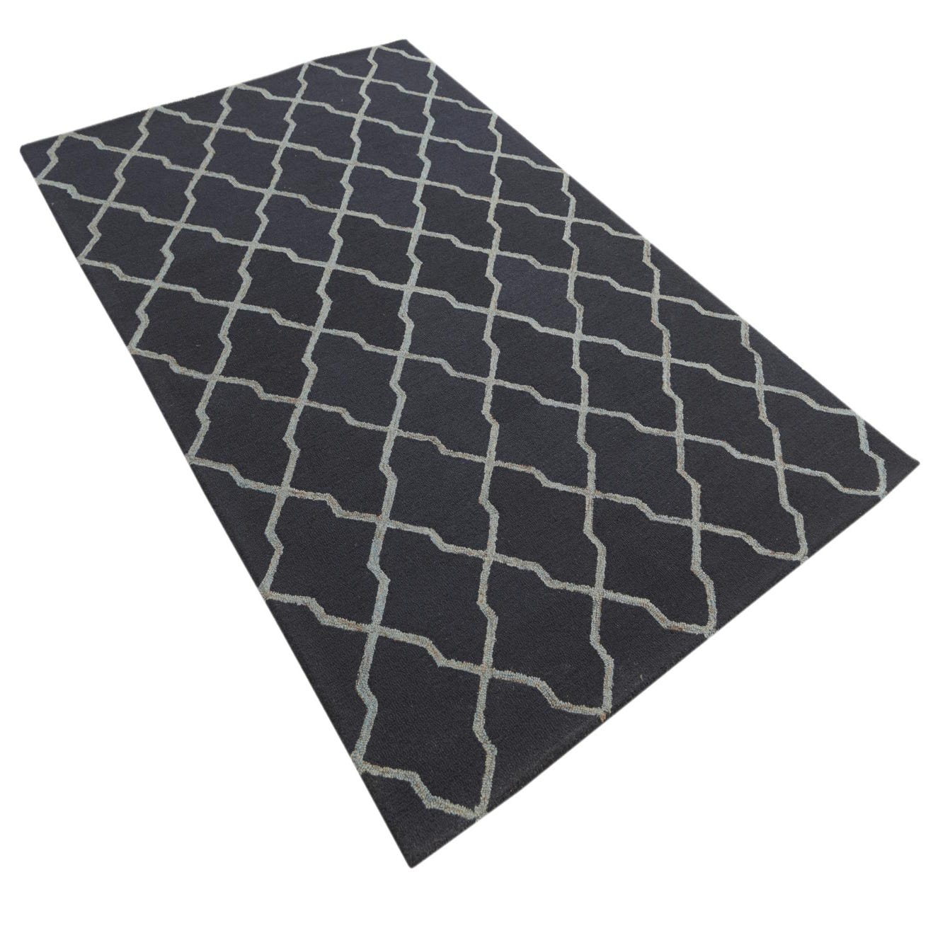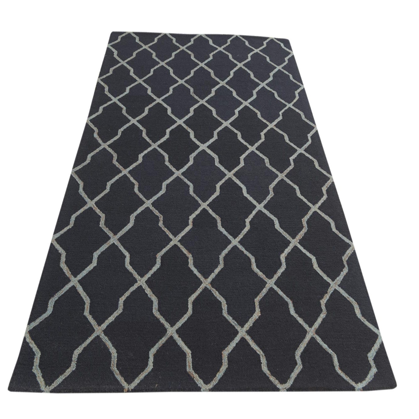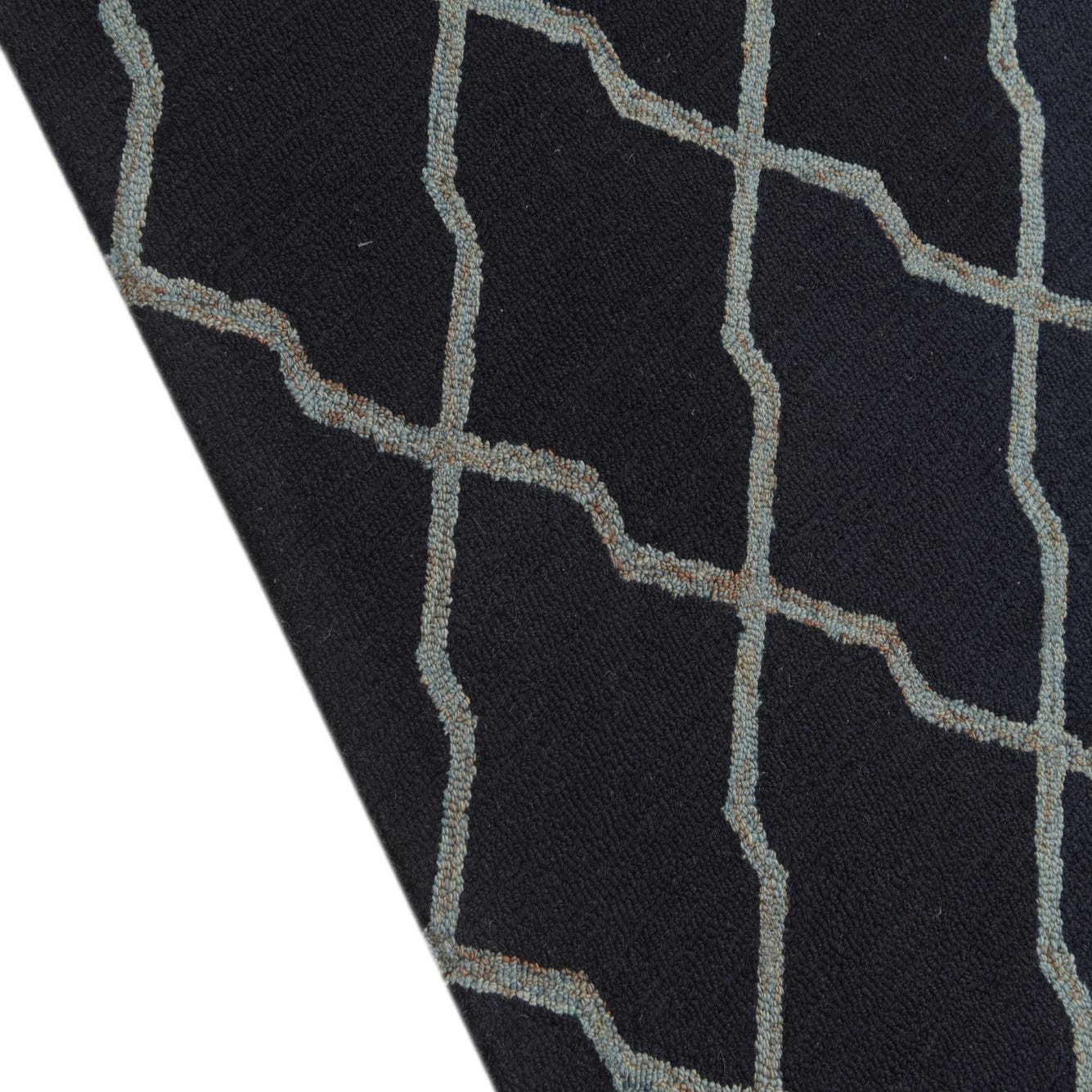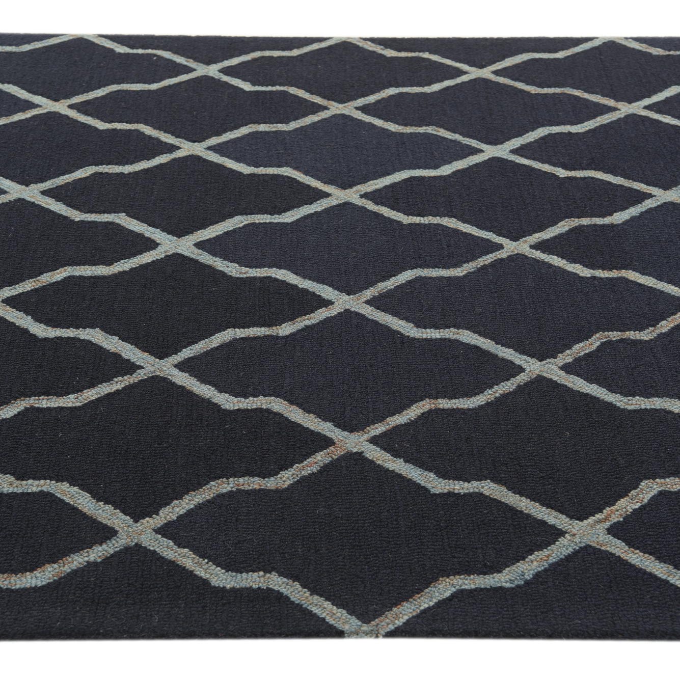 Pair this rug with neutral furnishings to allow its bold pattern to serve as a focal point, or use it as a sophisticated backdrop to showcase vibrant accents within a room. Its wool texture also lends itself to a touch of warmth and comfort, perfect for creating an inviting atmosphere in living rooms, dining areas, or bedrooms.