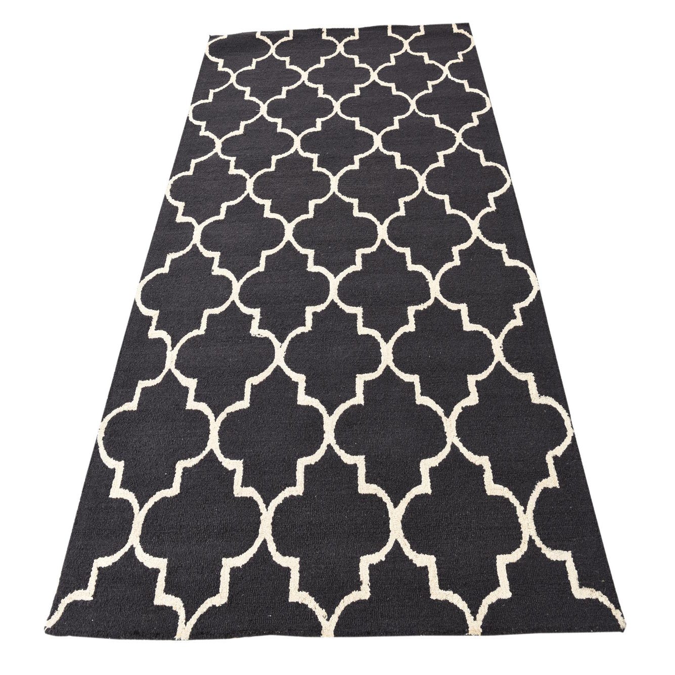 Primary color is Navy Blue. Colors in this rug include: Navy Blue, Ivory.