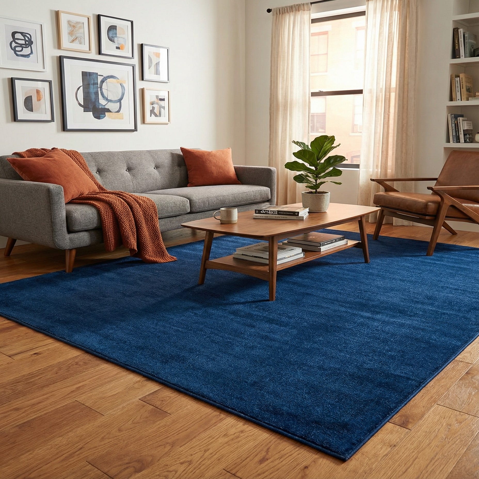 Machine made of 100% polypropylene, this piece offers a smooth, dense surface that works well to define a seating area, sit beneath a bed, or anchor a dining table. Pair it with warm wood tones and brass accents for a layered, contemporary feel, with crisp white walls and streamlined furniture for a modern minimalist look, or with leather and textured fabrics for a cozy, masculine scheme. It’s suited to living rooms, bedrooms, home offices, and entryways where a rich navy base will tie the room together.