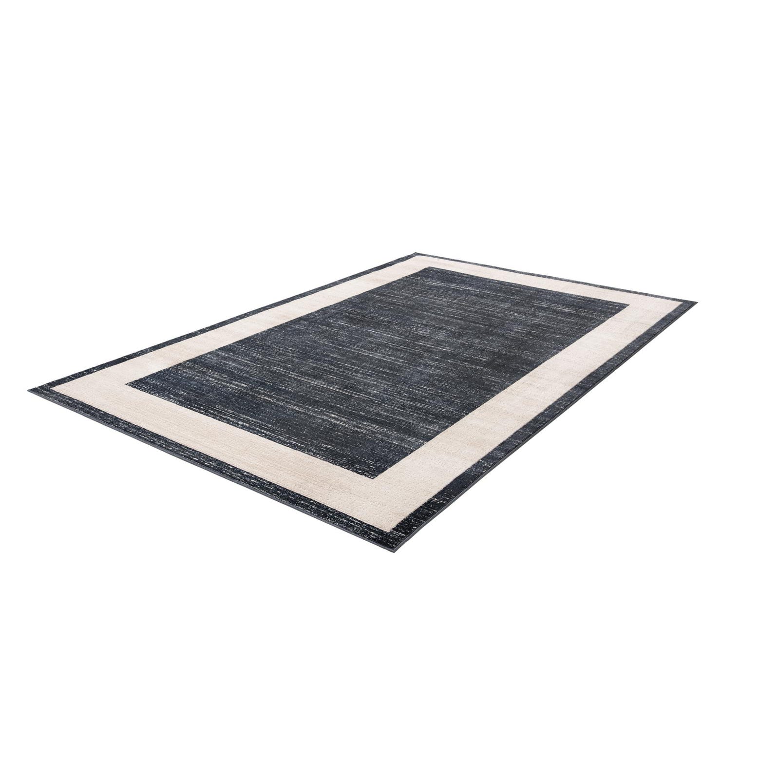 The straightforward border design and two-tone palette work well in contemporary, coastal, or transitional interiors. Place it beneath a seating group to anchor a living room, use it to define a dining area, or lay it in an entry or home office where a low-profile rug is useful. Pair with light wood furniture, neutral upholstery, and mixed metal accents for a balanced, pulled-together look.