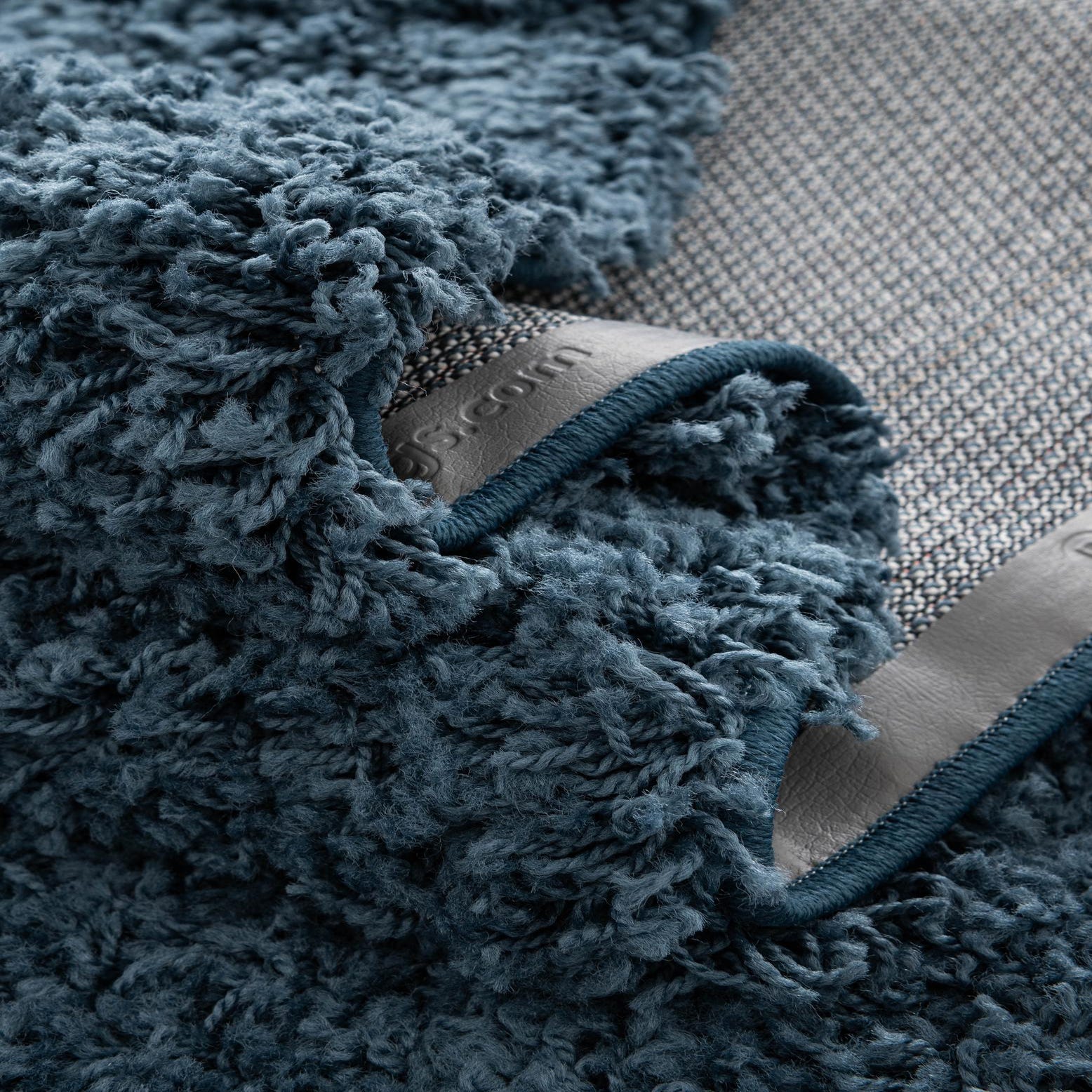 The rug's texture offers a tactile experience, with a deep pile that invites you to step onto its plush surface. The monochromatic navy blue color palette is versatile, allowing for seamless integration into a variety of interior design themes. Its solid color scheme serves as a grounding element in spaces that feature bolder patterns and designs.