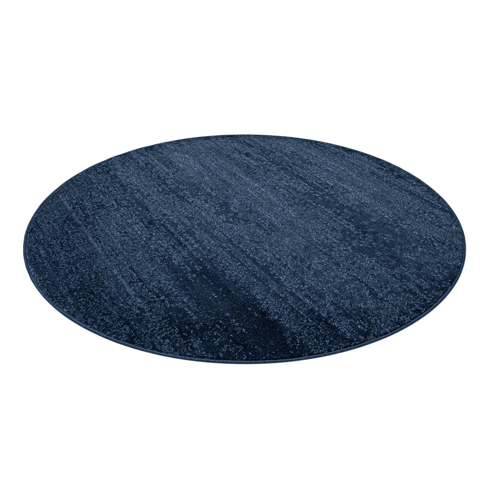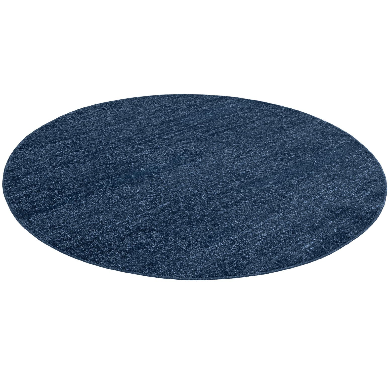 The Angelica Collection presents a 6 Ft Round rug that offers a contemporary and sophisticated touch to any space. Machine Woven of 100% Polypropylene, it provides a durable yet comfortable underfoot experience. The rug's texture boasts a fine blend of shades, with a depth of navy blue as the background color complemented by varying tones of blue that create a subtle and engaging pattern.