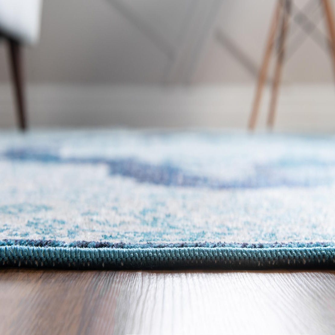 Machine-made from 100% polypropylene, the construction is low-profile and tightly woven. Running your hand across it reveals a smooth, slightly ribbed texture and a firm, slightly cushioned feel underfoot. This runner works well in hallways, entryways or alongside kitchen counters; pair it with light oak or whitewashed floors and brass or matte-black accents for contrast, or layer it over a neutral sisal for added texture. Its cool blue and neutral tones suit coastal, modern farmhouse and transitional interiors that benefit from a refined, lived-in look.