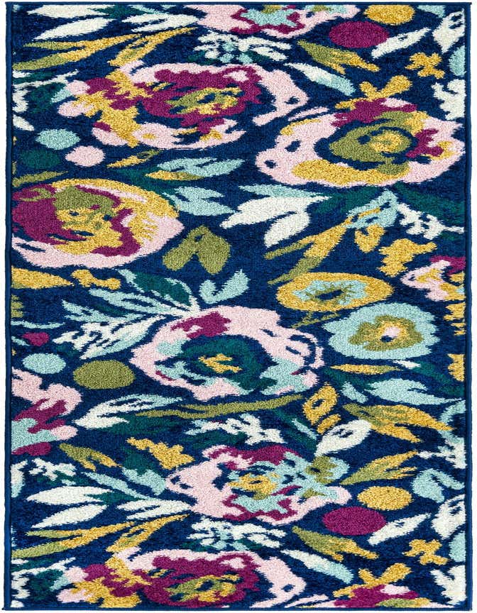 Place this runner in a hallway or entry to introduce color without overpowering the space, or use it in a kitchen or narrow pantry to bring pattern and soft footing underfoot. It pairs well with light wood floors and white or navy cabinetry for a fresh, modern look, and also complements eclectic or cottage-style rooms where mixed patterns and layered textiles are welcome. The combination of rich navy background and multicolor florals makes it easy to tie in accent pillows, artwork or curtains in any of the rug’s brighter tones.
