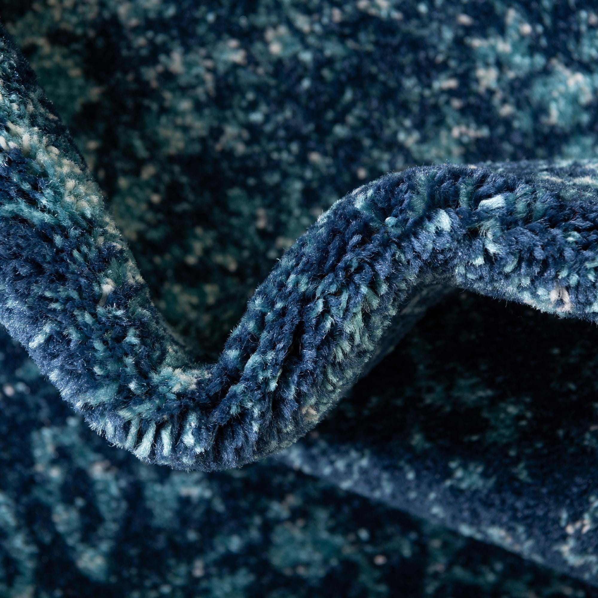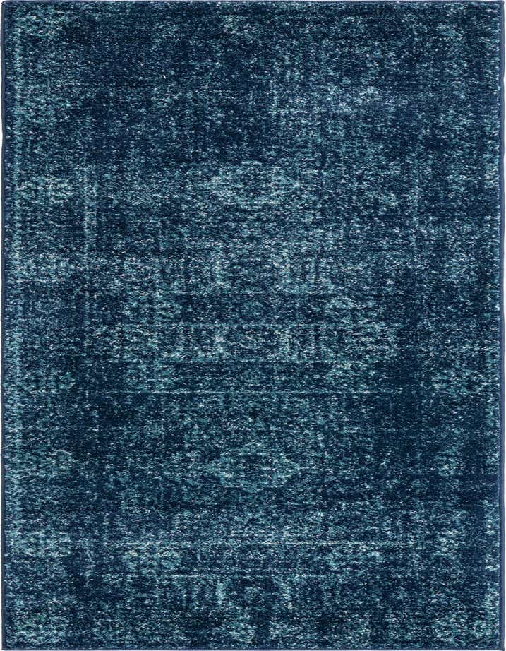 Primary color is Navy Blue. Colors in this rug include: Navy Blue, Blue, Ivory.