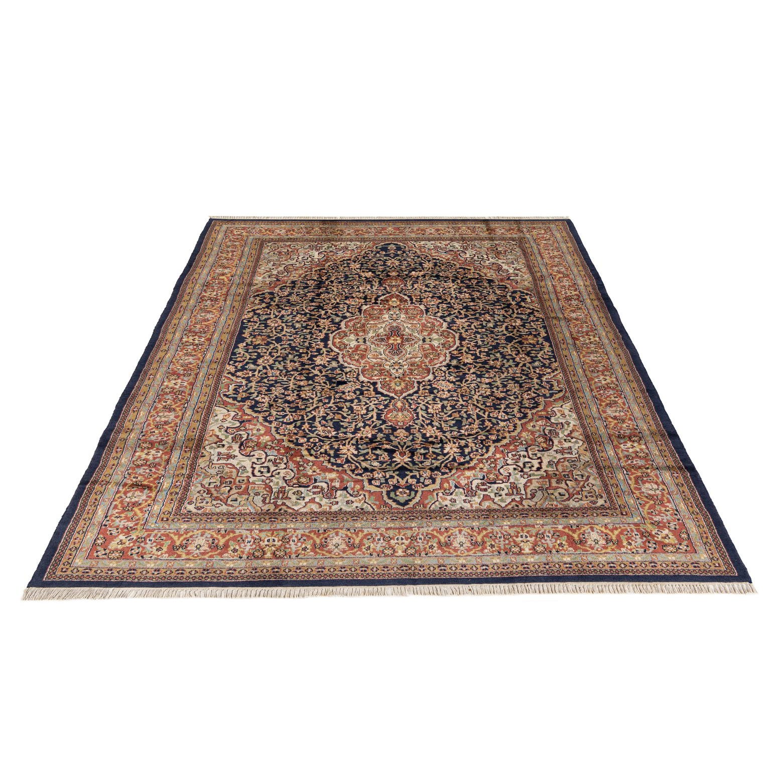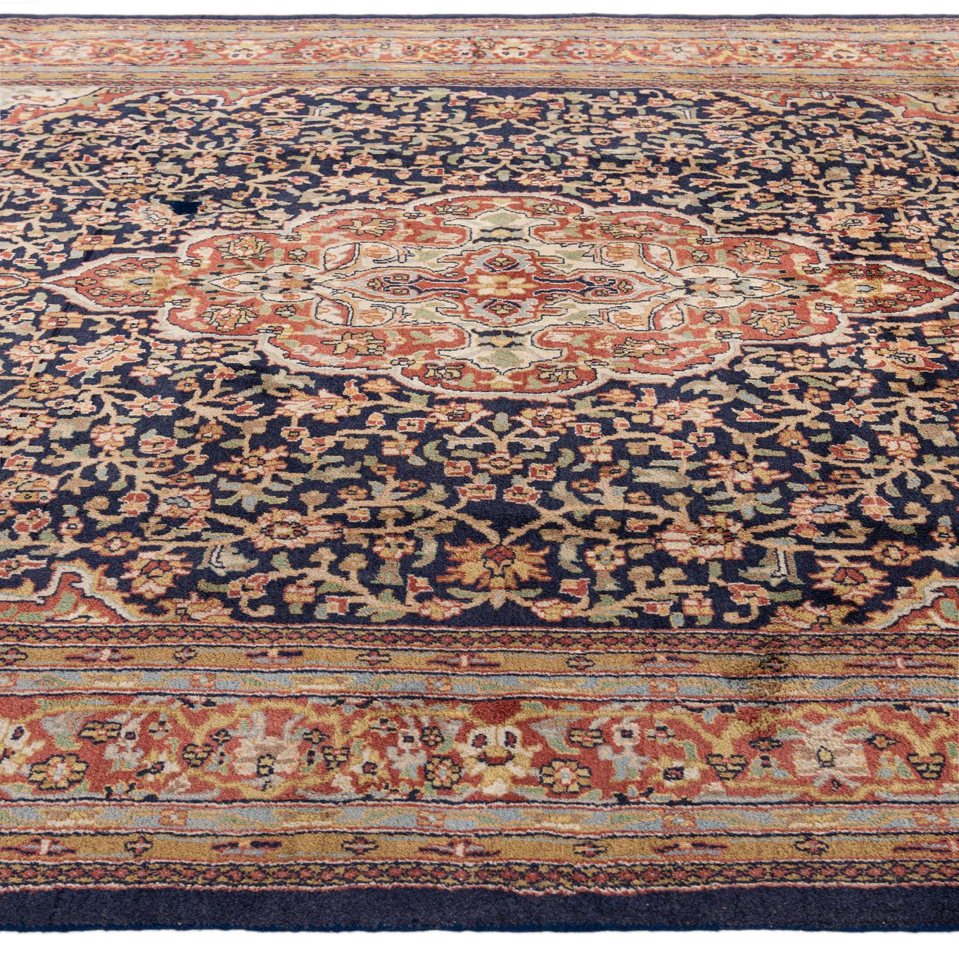 A 6x9 rectangular navy blue traditional Oriental rug with a central medallion and intricate floral patterns.