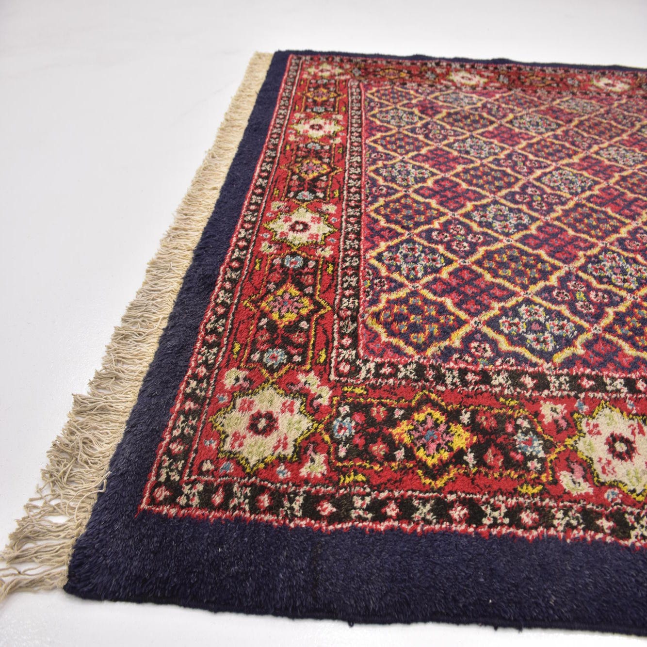 The rug's semi-antique status, being 40-60 years old, adds a storied character to the piece, and its fringe edges provide a classical finish. This rug would suit a variety of interior design scenarios, acting as a focal point in a traditional setting, blending seamlessly with a more eclectic mix of period pieces, or offering a contrast in a contemporary space with its rich hues and patterns. Ideal placements include a formal living room, a dining area, or a large entryway where its artisan craftsmanship and classic design can be fully appreciated.