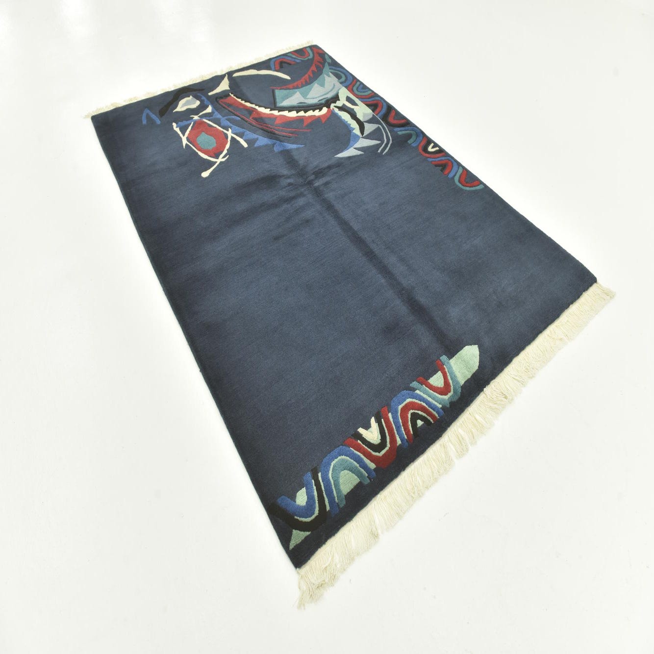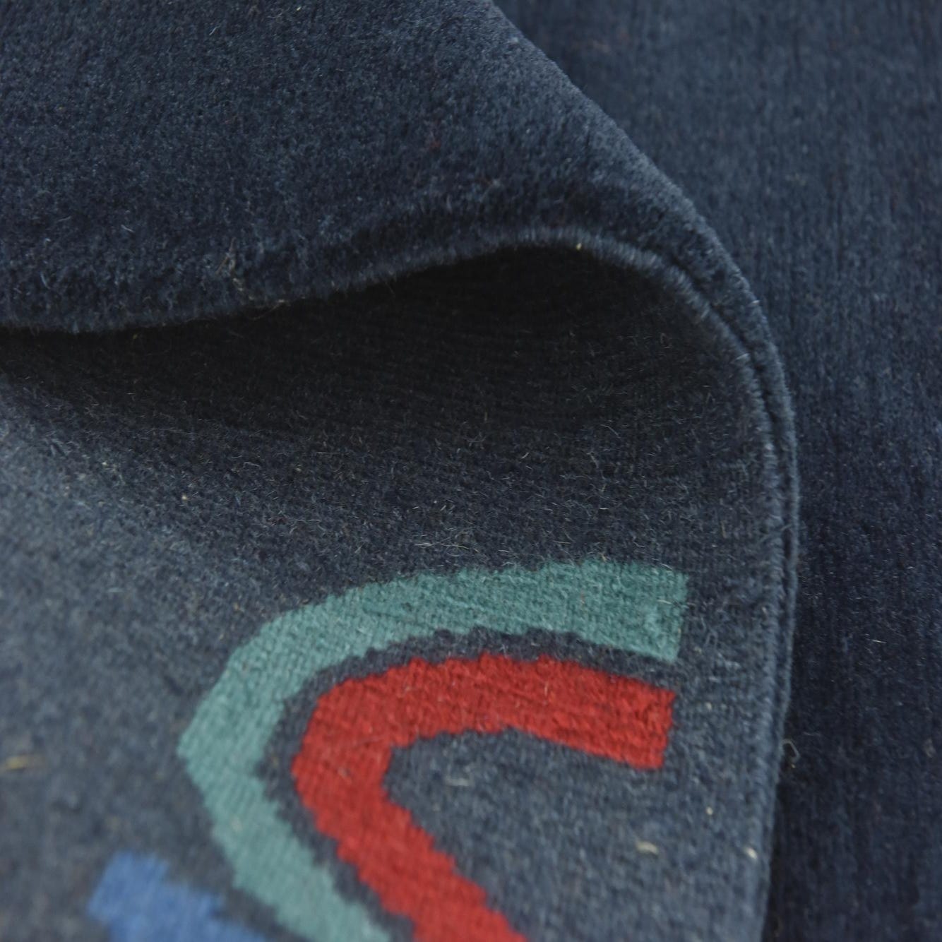 Primary color is Navy Blue. Colors in this rug include: Navy Blue, Beige, Black, Blue, Gray, Red.