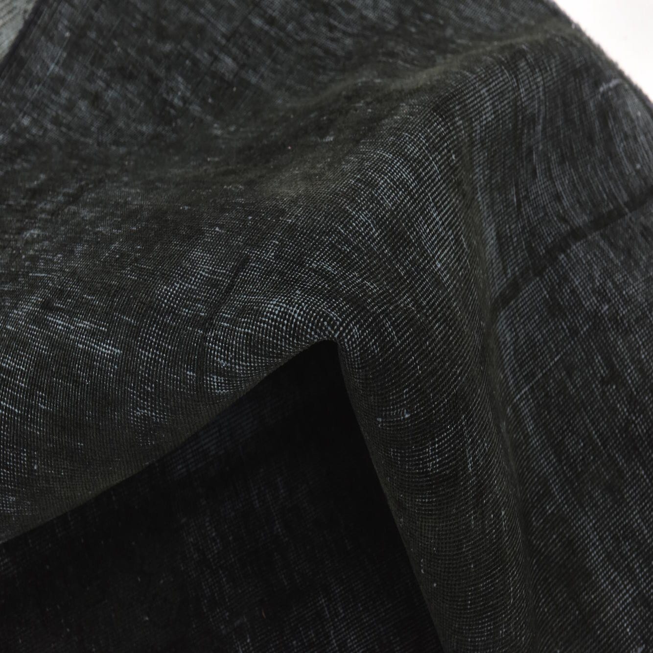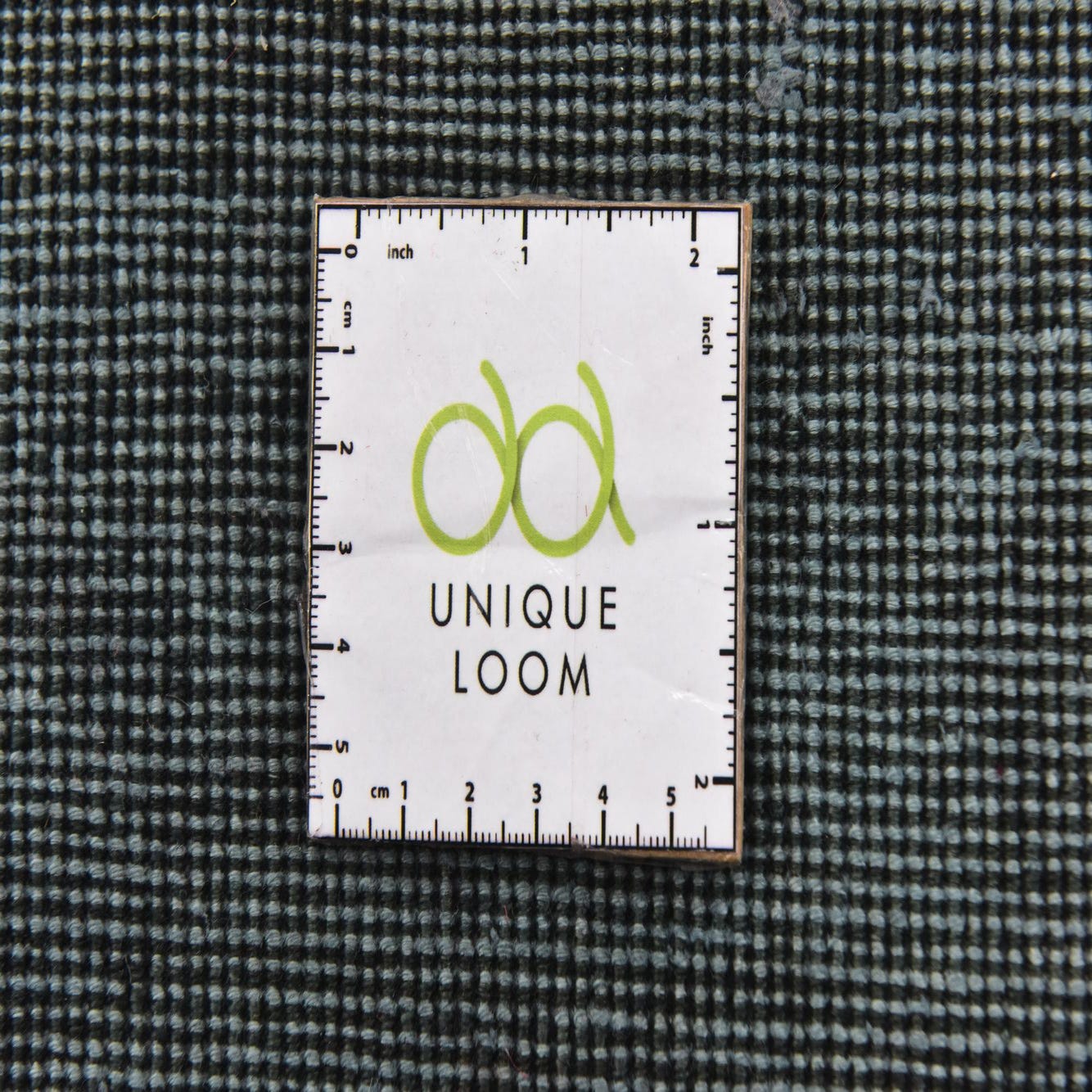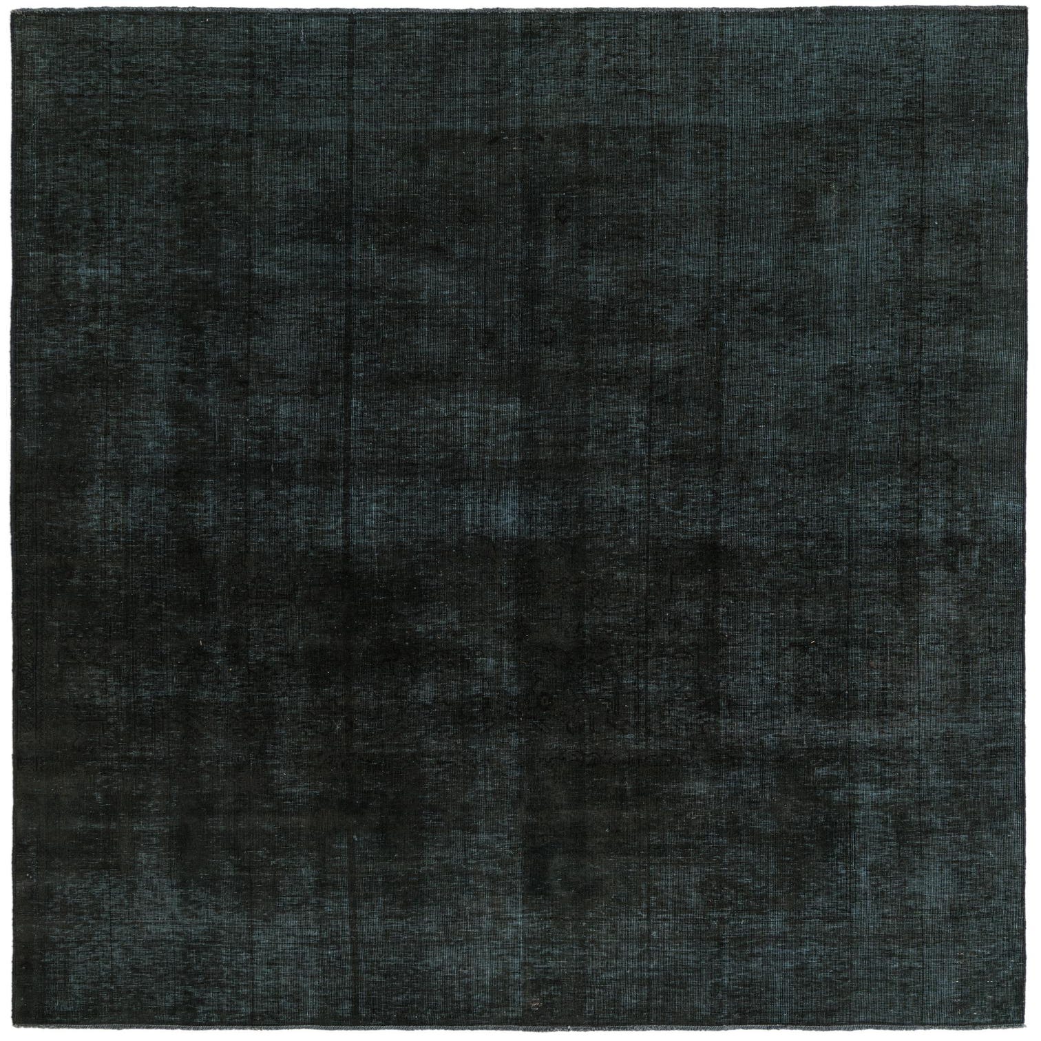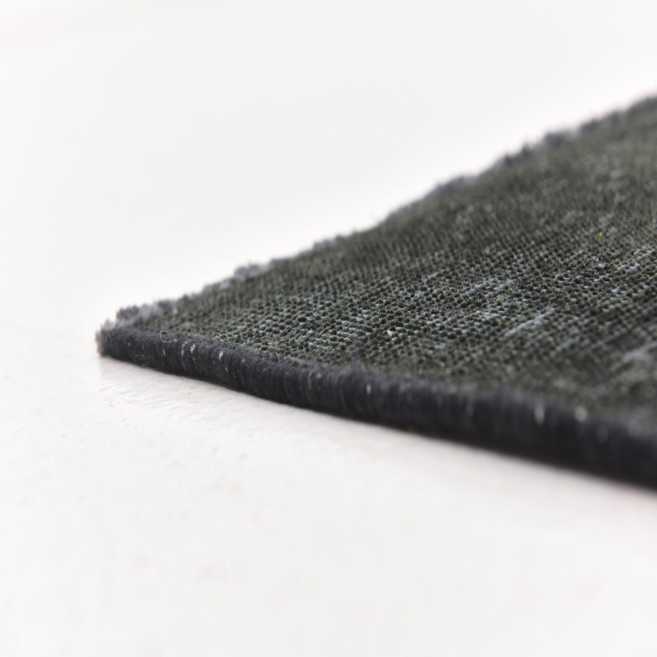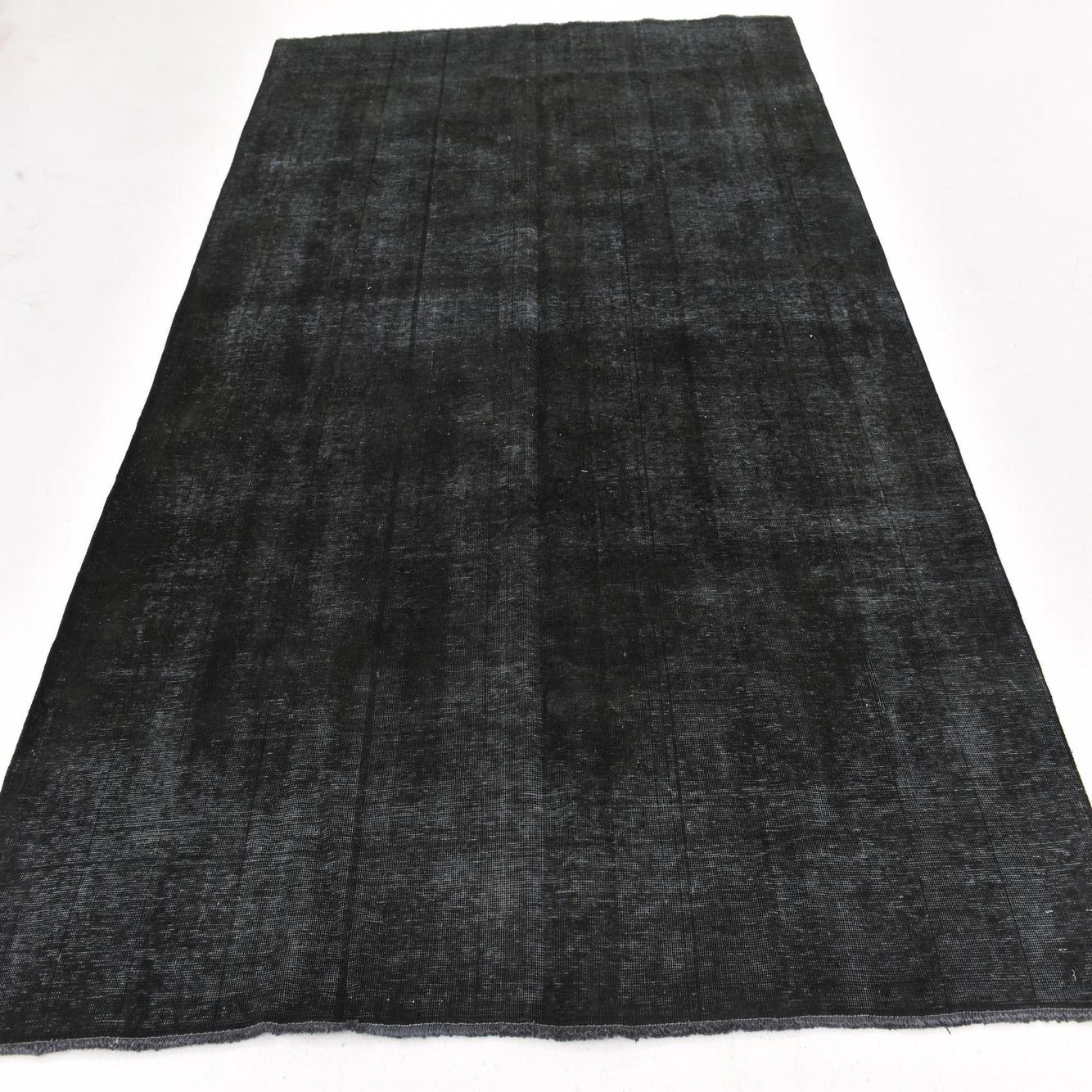 Hand-knotted from 100% wool, this rug presents a deep navy-blue field softly overlaid with black tonal variations and subtle vertical striations. The pattern is intentionally understated — an aged, overdyed effect that delivers depth and movement without a defined motif or border. Running your hand across the surface, you’ll notice a low-to-medium pile with a gentle nap and a slight sheen that highlights the wool’s natural texture and the rug’s handcrafted construction.