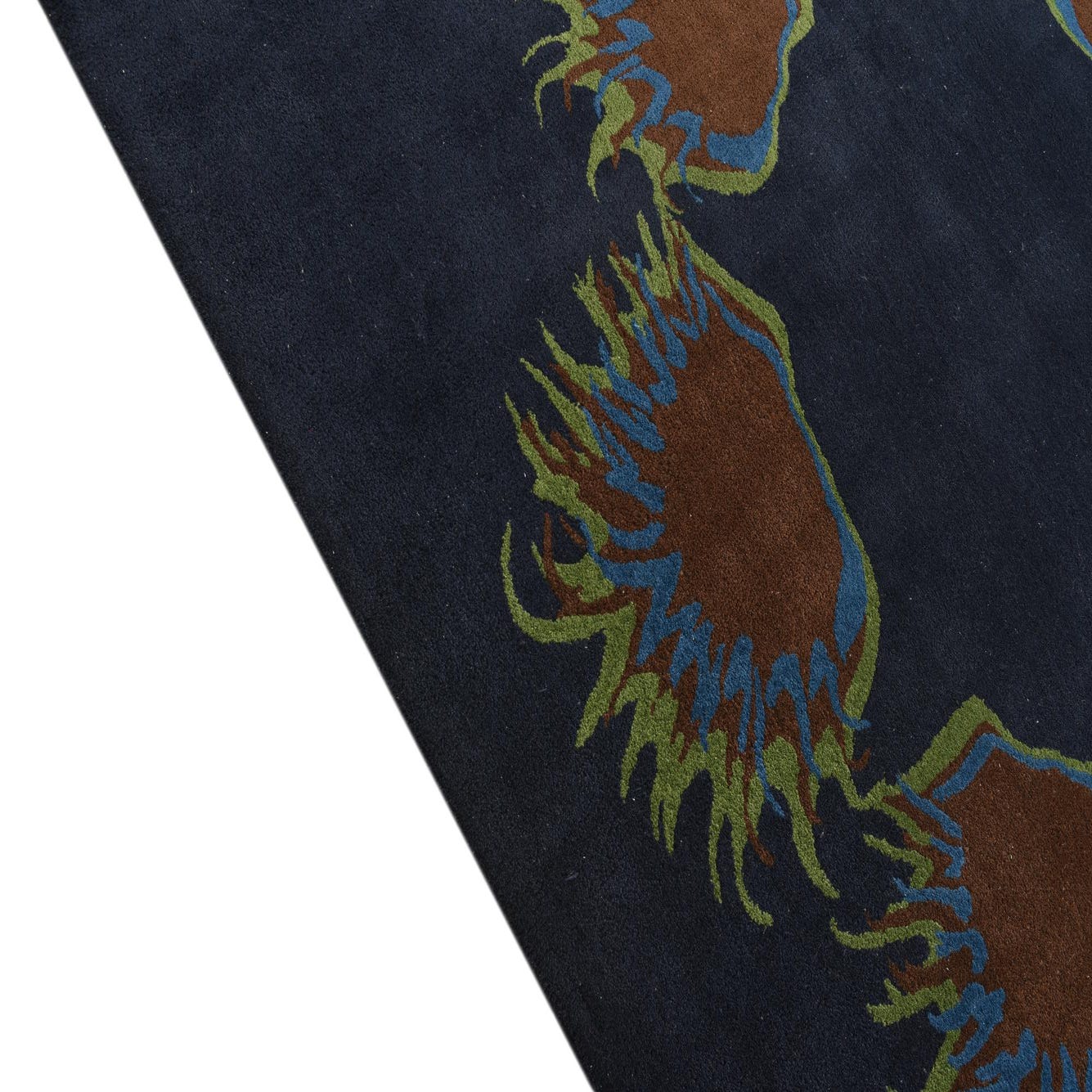 Primary color is Navy Blue. Colors in this rug include: Navy Blue, Blue, Brown, Green.