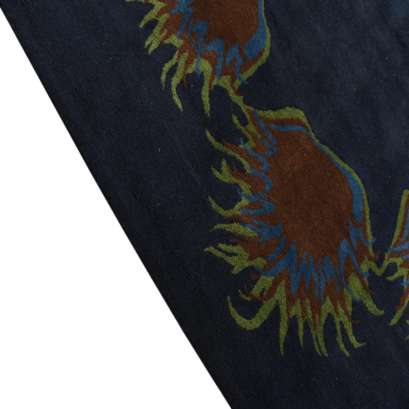 Primary color is Navy Blue. Colors in this rug include: Navy Blue, Blue, Brown, Green.