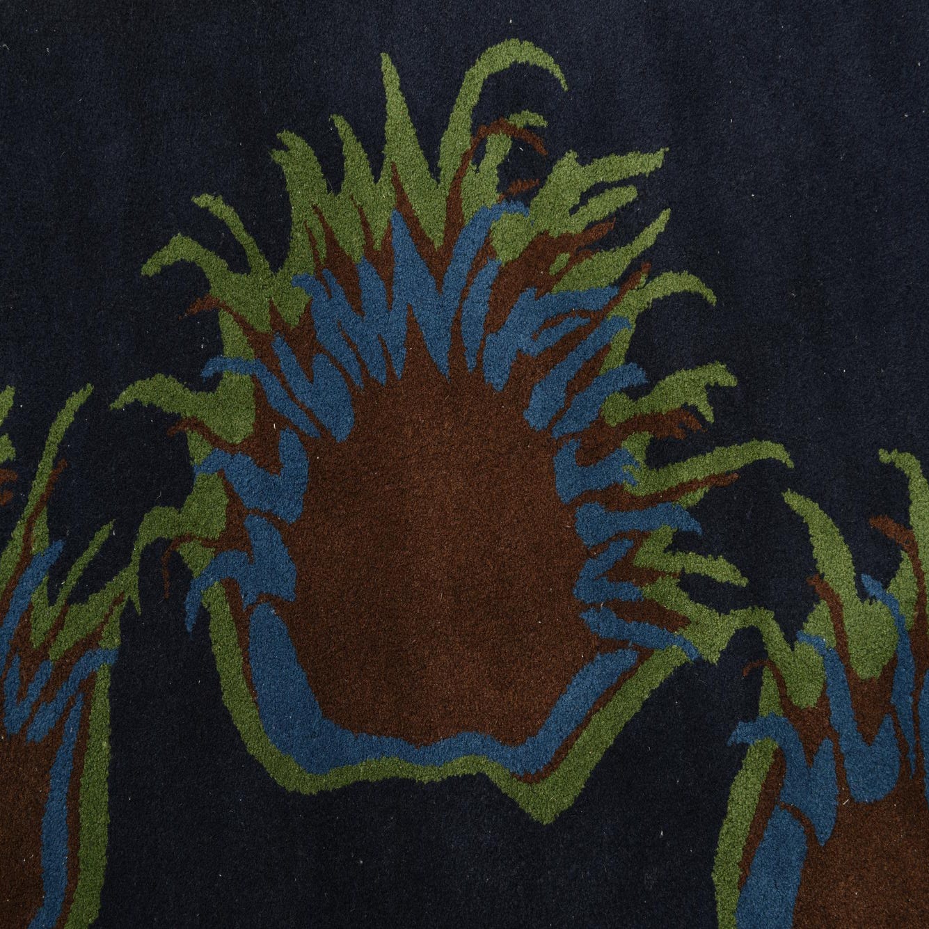 Place this rug to anchor a living room seating area beneath a low-profile sofa and wood coffee table, or lay it in a bedroom to ground a neutral bedding scheme and add color depth. It also pairs well with leather seating and warm metal accents in a study, and complements mid-century modern, contemporary eclectic, or coastal-inspired interiors that draw on navy and green tones.
