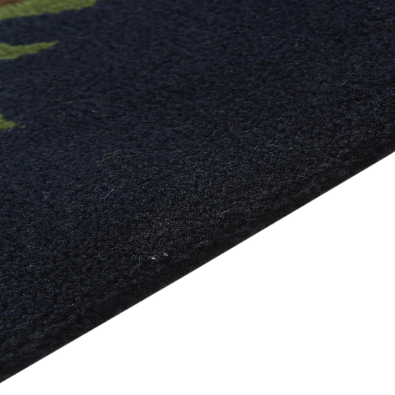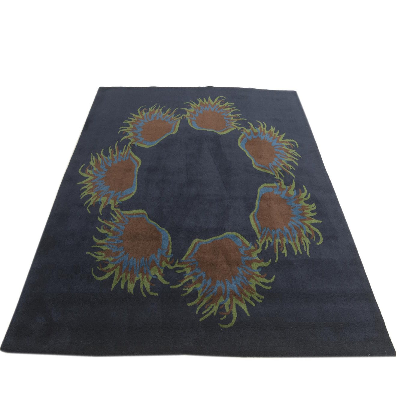 This piece anchors a seating area beautifully—place it under a low coffee table to frame sofas and chairs—or use it as a focal point in a study or bedroom. The navy base pairs well with warm wood tones, leather upholstery, and brushed metal accents, while the blue and green highlights add a fresh contrast that complements mid-century modern, contemporary, and eclectic interiors.