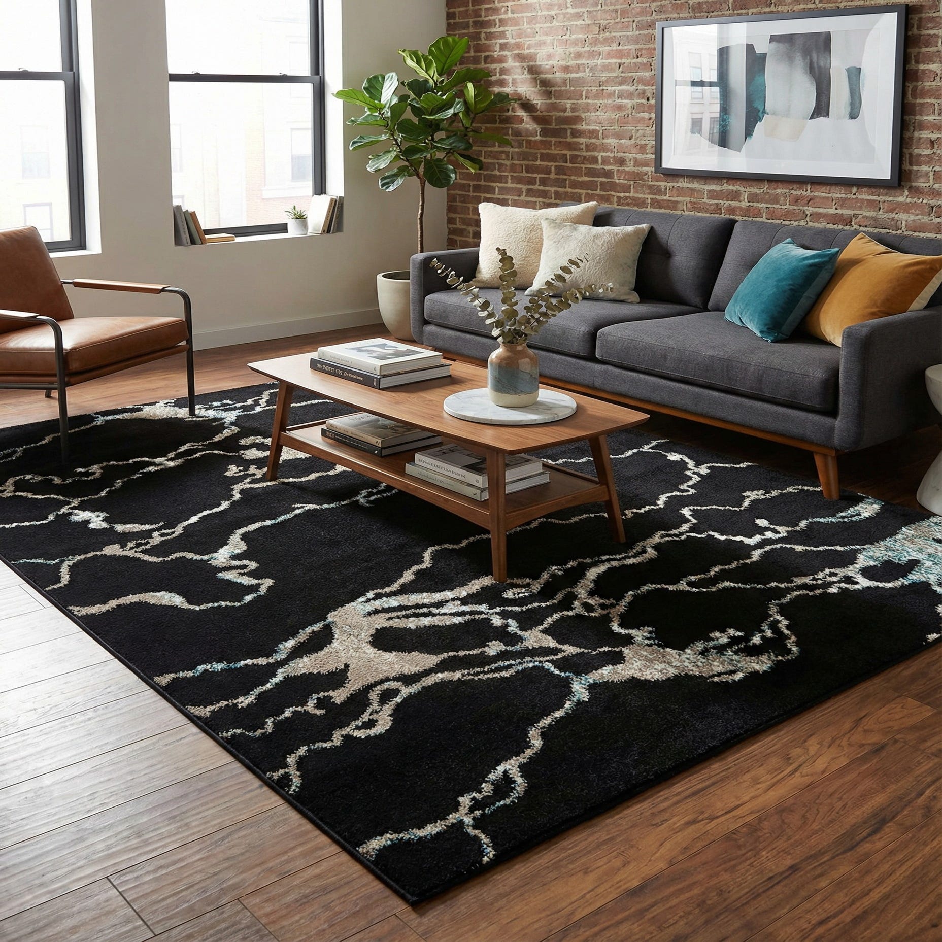 Place this rug under a living room seating group to anchor a modern or transitional layout, or beneath a dining table to introduce contrast against light wood floors. It also works well in a coastal-inspired bedroom when paired with linens in soft neutrals and blues, or in an urban loft alongside metal and leather furnishings to soften harder textures. The combination of pattern and color makes it easy to integrate with both minimal and layered interiors.