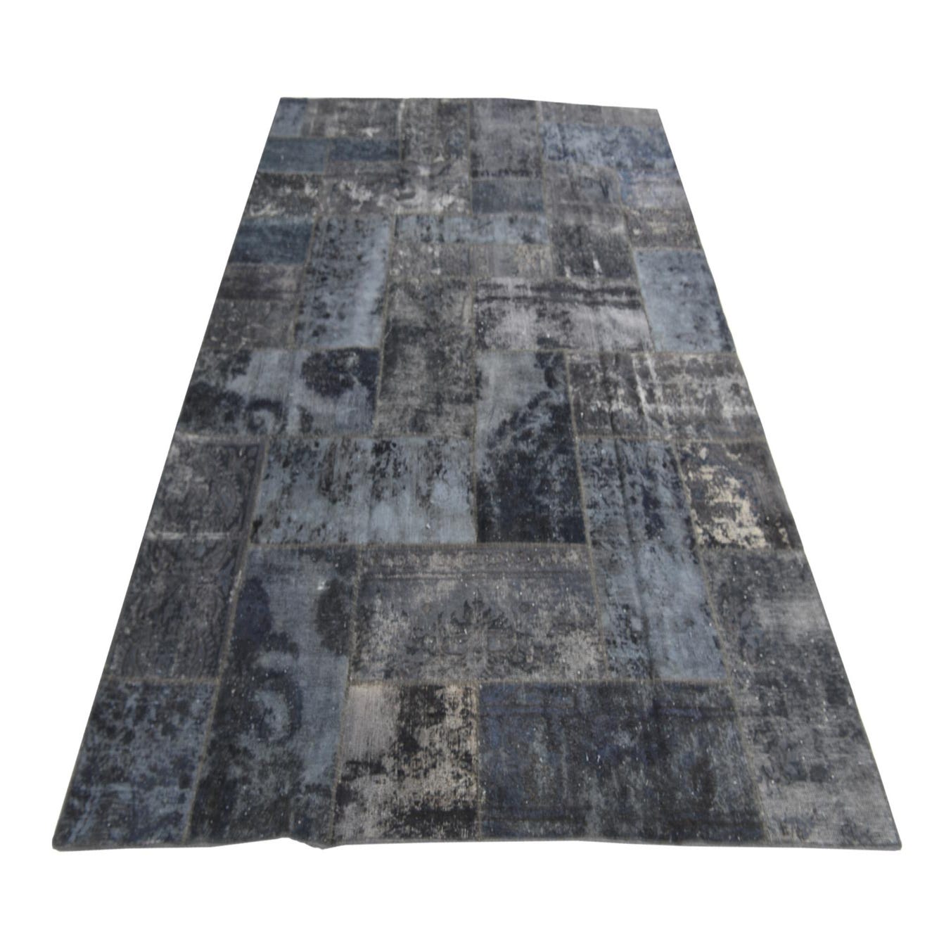 A 7x10 rectangular Ultra Vintage rug in shades of blue, featuring a distressed patchwork design with abstract and faded Persian patterns.