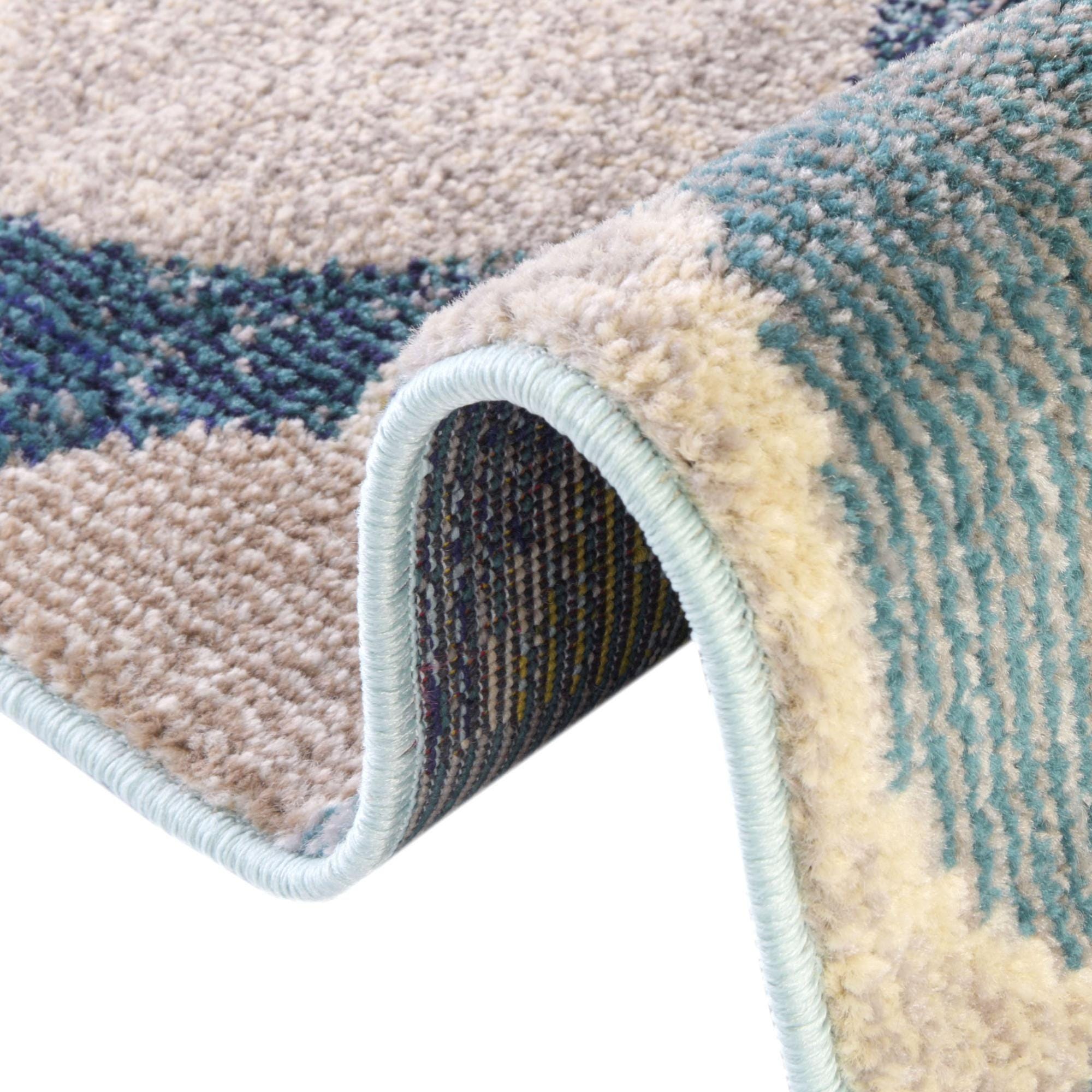 This design works well to define a round dining area, anchor a conversational seating group in a living room, or add personality to a home office or entry. Pair it with warm wood furniture and neutral upholstery for balanced contrast, with teal or green accents to pick up the circular tones, or use it in a contemporary or transitional scheme where graphic pattern and color bring the room together.
