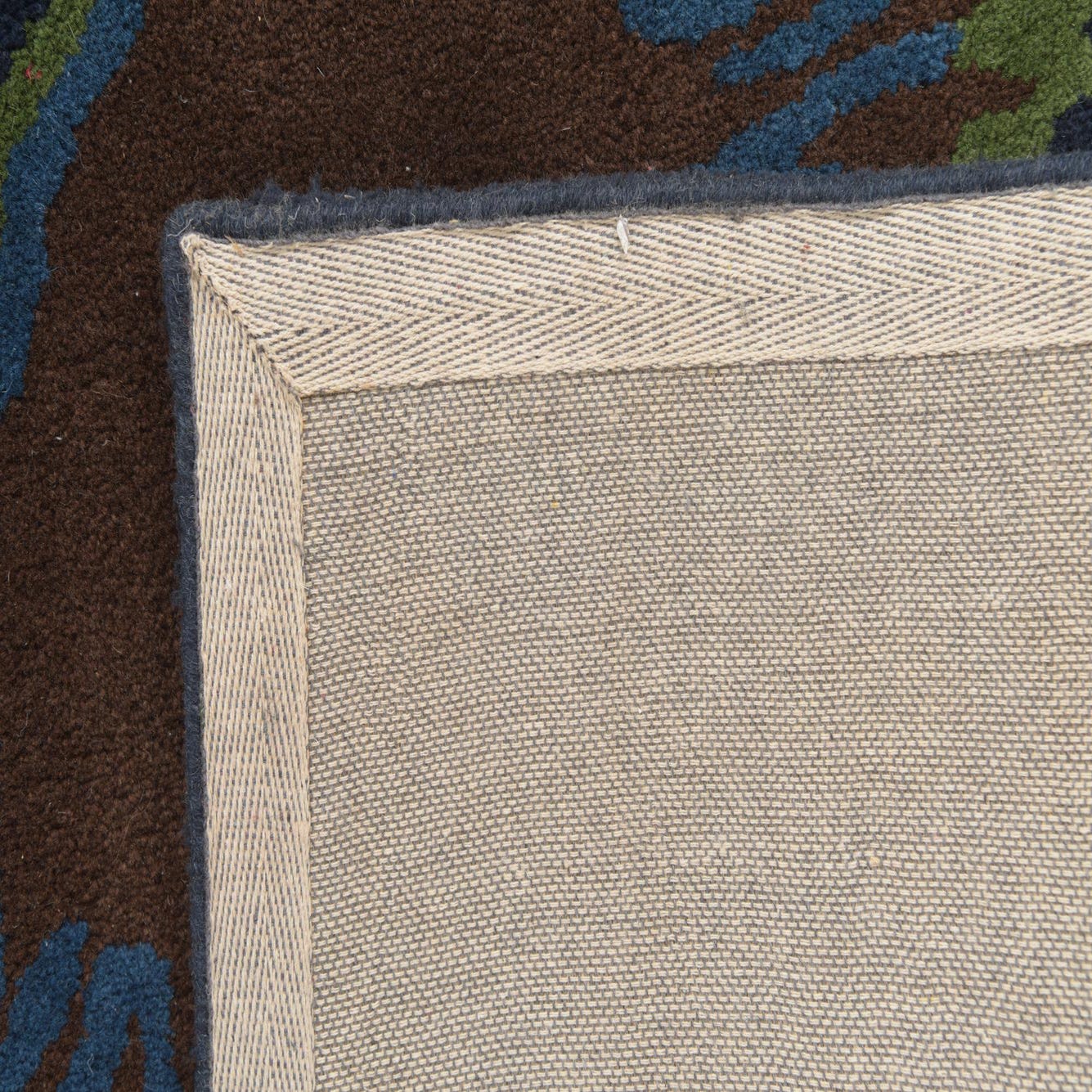 Primary color is Navy Blue. Colors in this rug include: Navy Blue, Green, Brown, Blue.