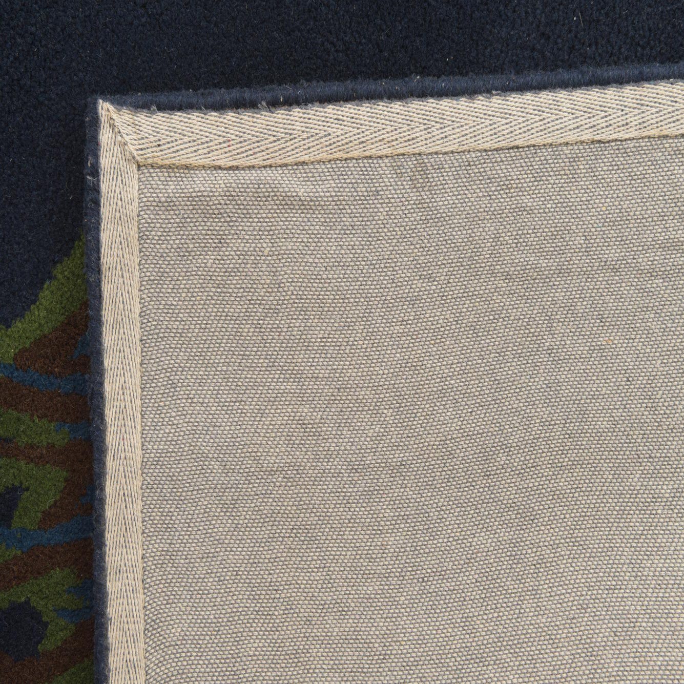 Primary color is Navy Blue. Colors in this rug include: Navy Blue, Blue, Brown, Green.