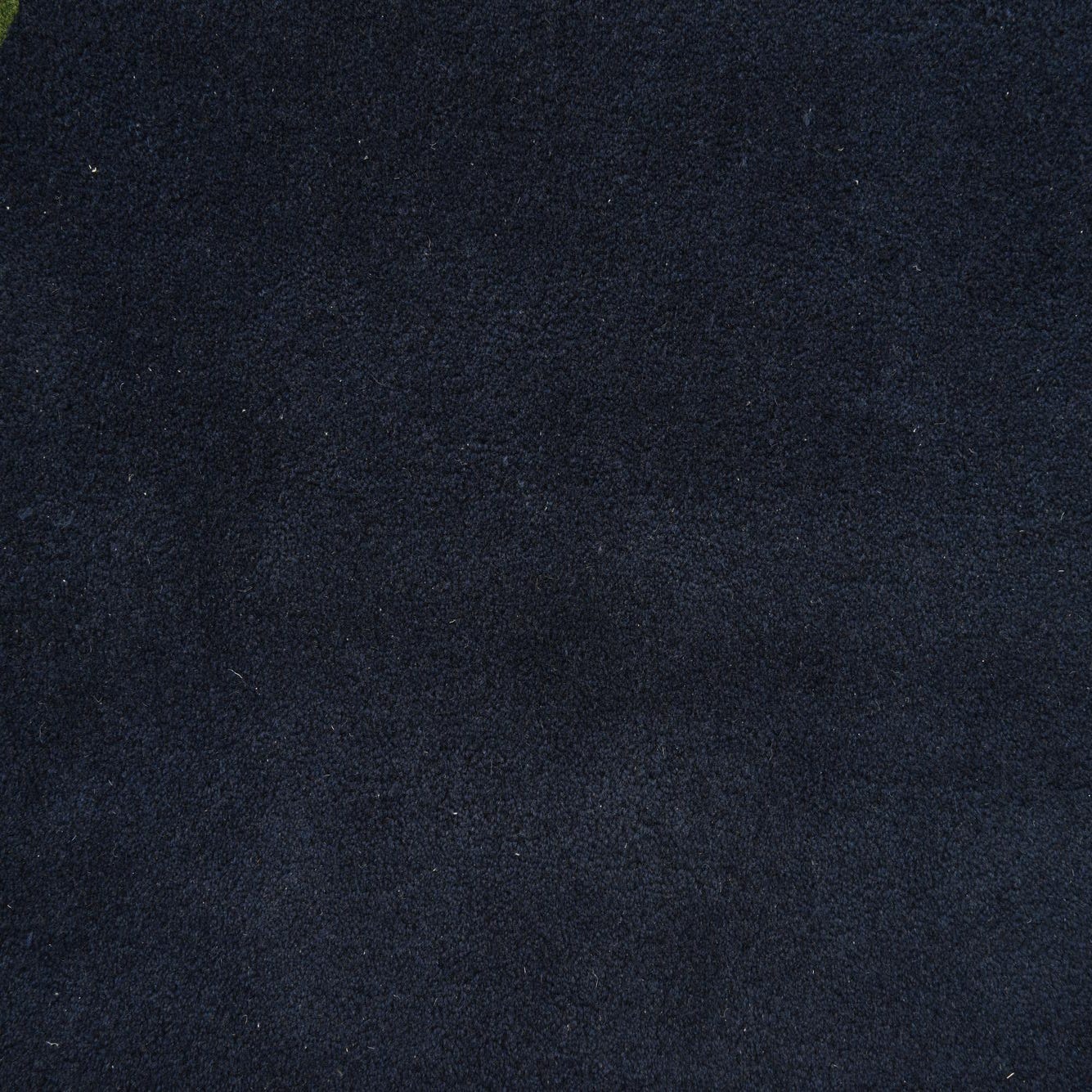 Use this rug to anchor a living area or study where the navy field will tie together upholstered pieces and darker wood tones, or place it beneath a square coffee table to emphasize geometry in a modern or mid-century layout. It also works well in an eclectic bedroom or a home office where the ringed pattern can act as a calm focal point while the brown, blue, and green accents pick up surrounding textiles and artwork.