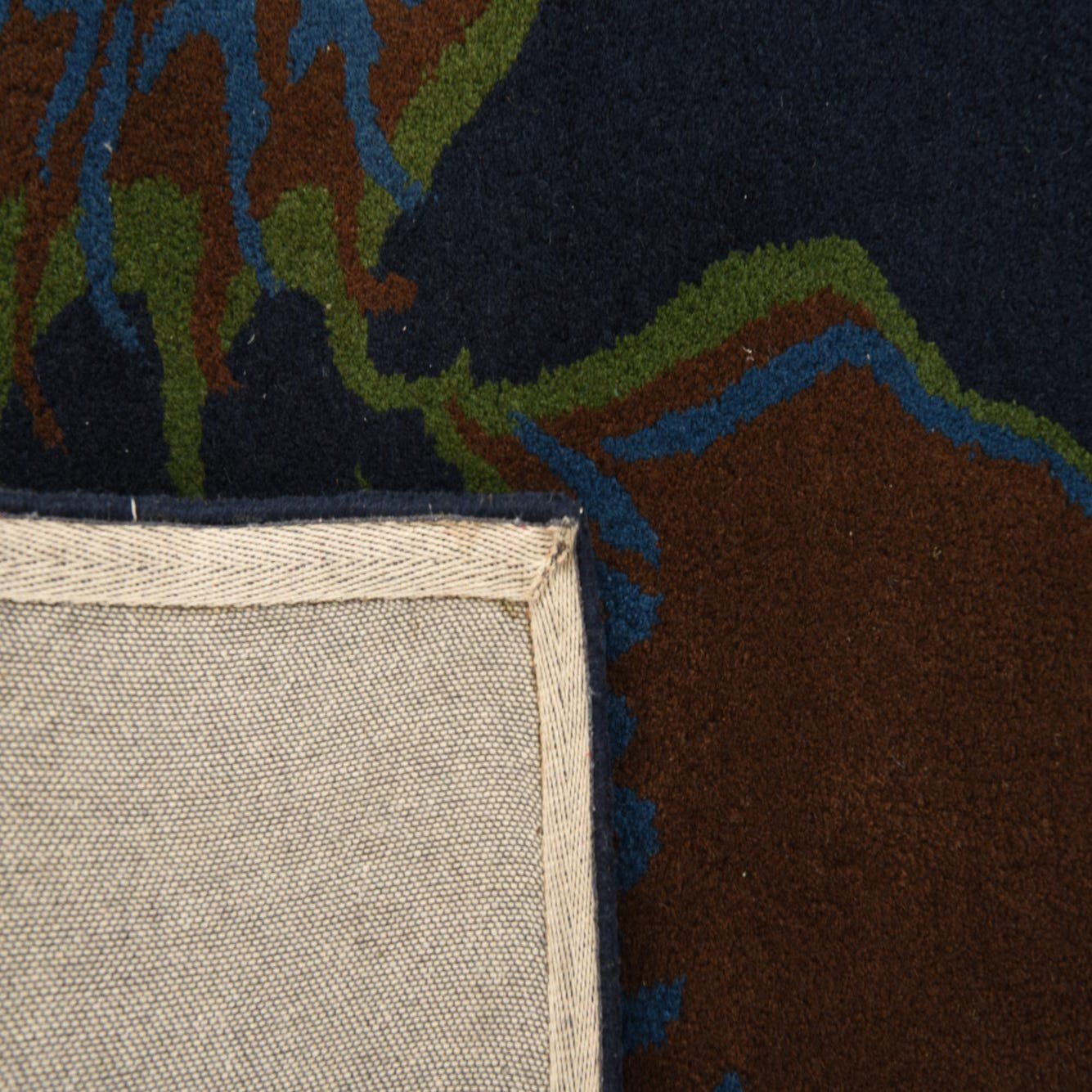 Primary color is Navy Blue. Colors in this rug include: Navy Blue, Blue, Brown, Green.