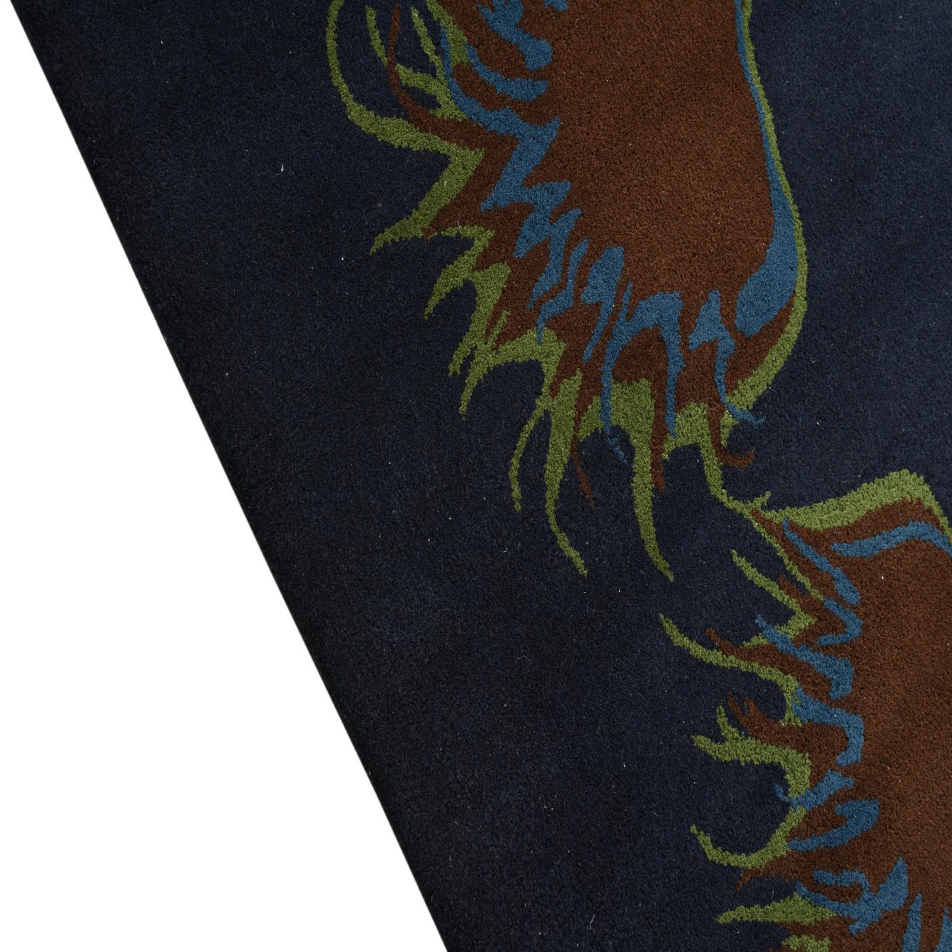 Primary color is Navy Blue. Colors in this rug include: Navy Blue, Blue, Brown, Green.