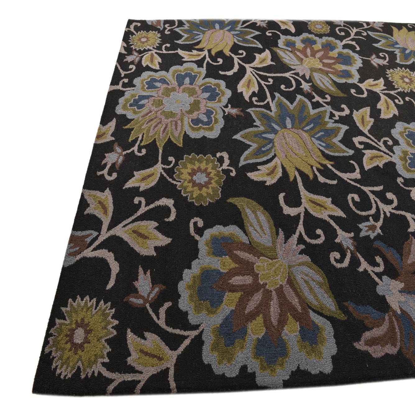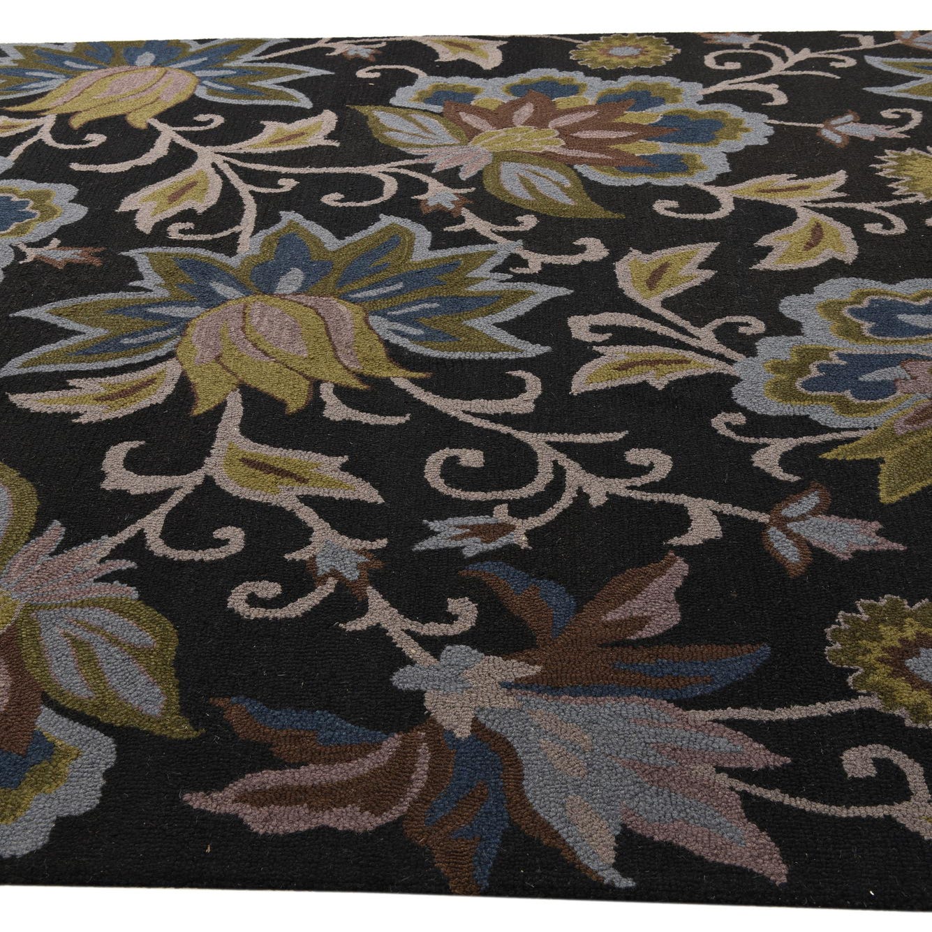 An 8x10 rectangular Agra rug with a traditional floral pattern in blues, pinks, and greens on a dark background.