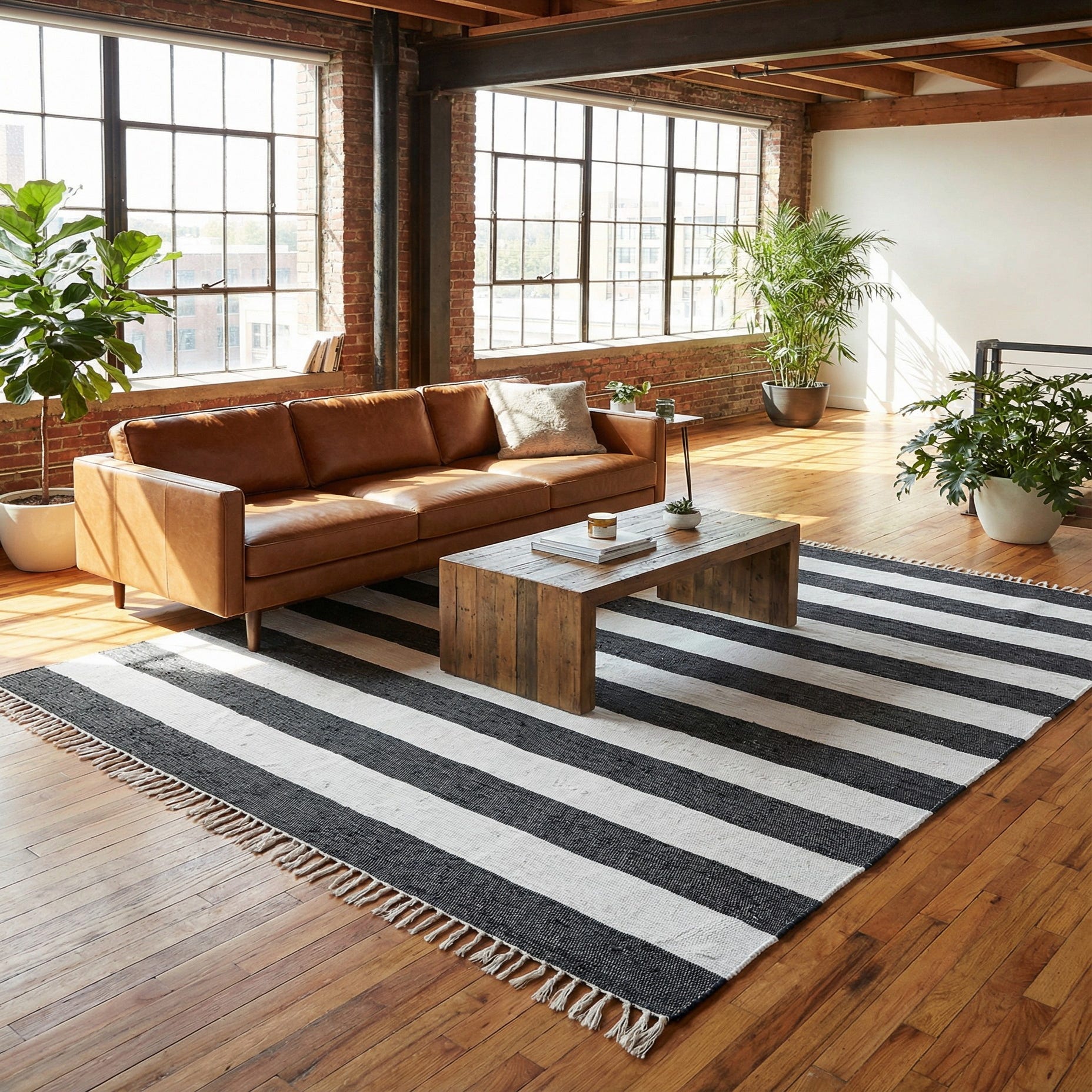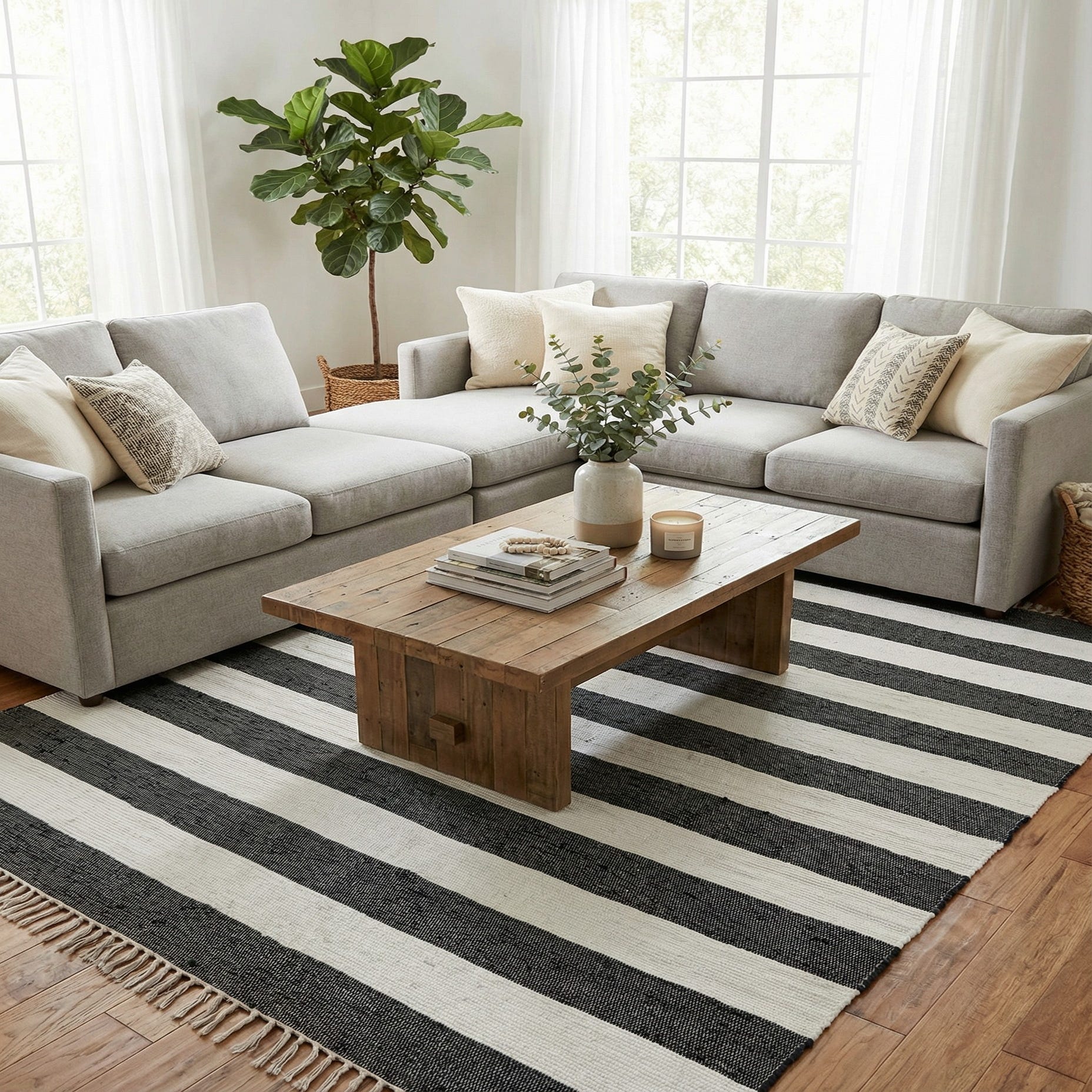 The clean navy-and-ivory palette and straightforward stripe pattern suit a range of interiors—from coastal and nautical rooms to modern farmhouse and contemporary spaces. Use it to anchor a living area with a low-profile sofa, slide it beneath a dining table for a fresh, graphic foundation, or layer it in a bedroom for added texture. It pairs naturally with warm wood tones, woven accessories, and neutral linens for a relaxed, pulled-together look.
