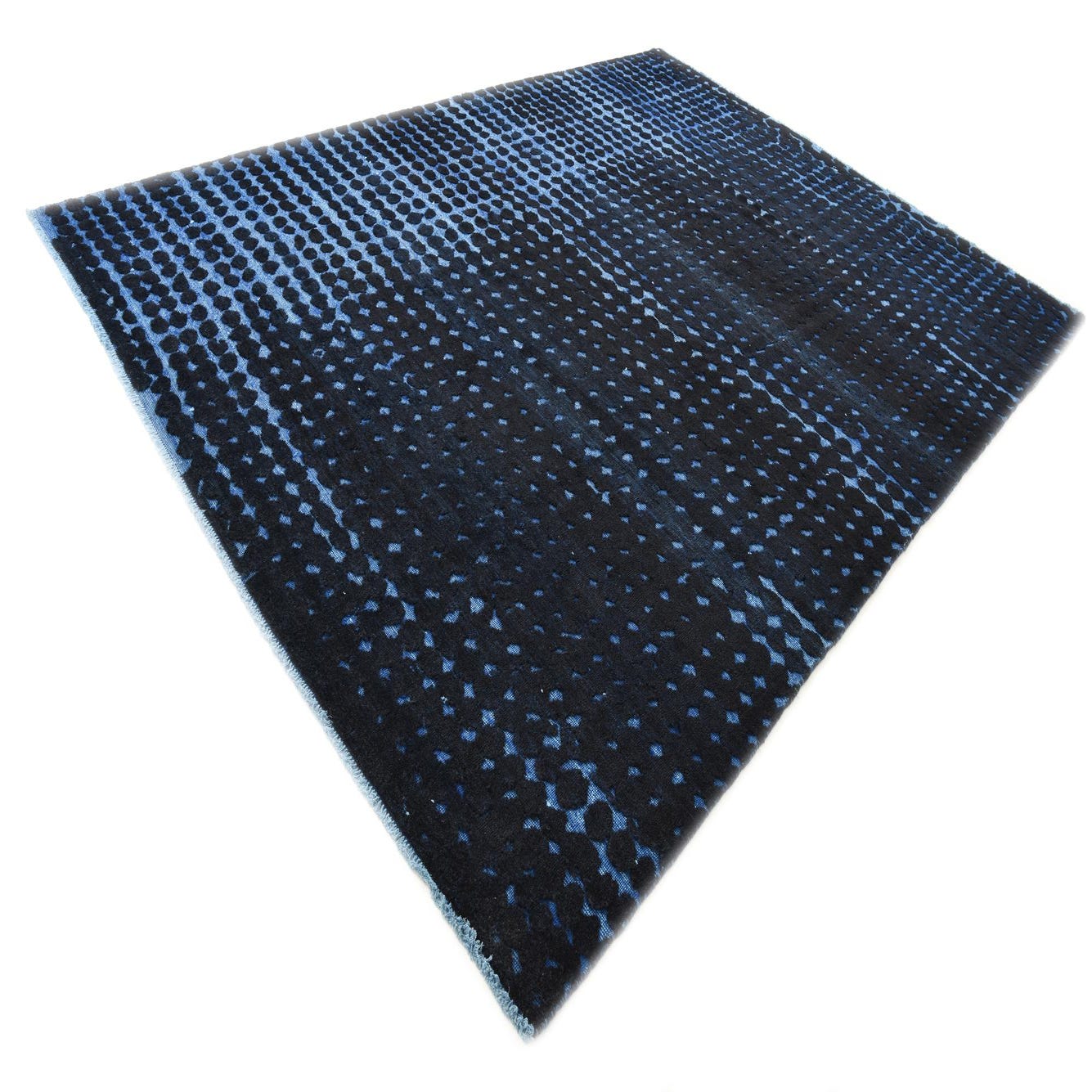 An 8x10 rectangular Darya rug with a modern abstract pattern in varying shades of blue, featuring a textured pile.
