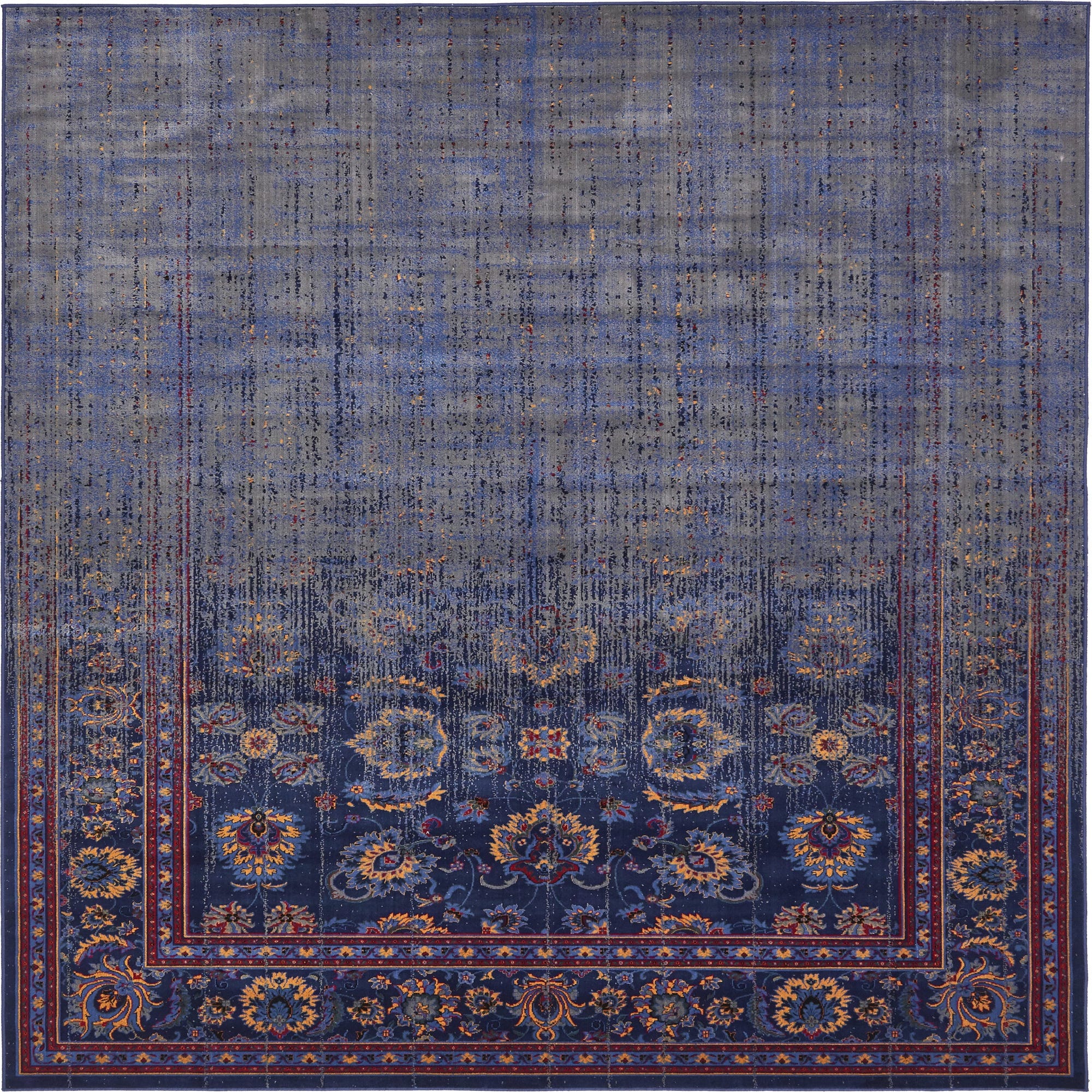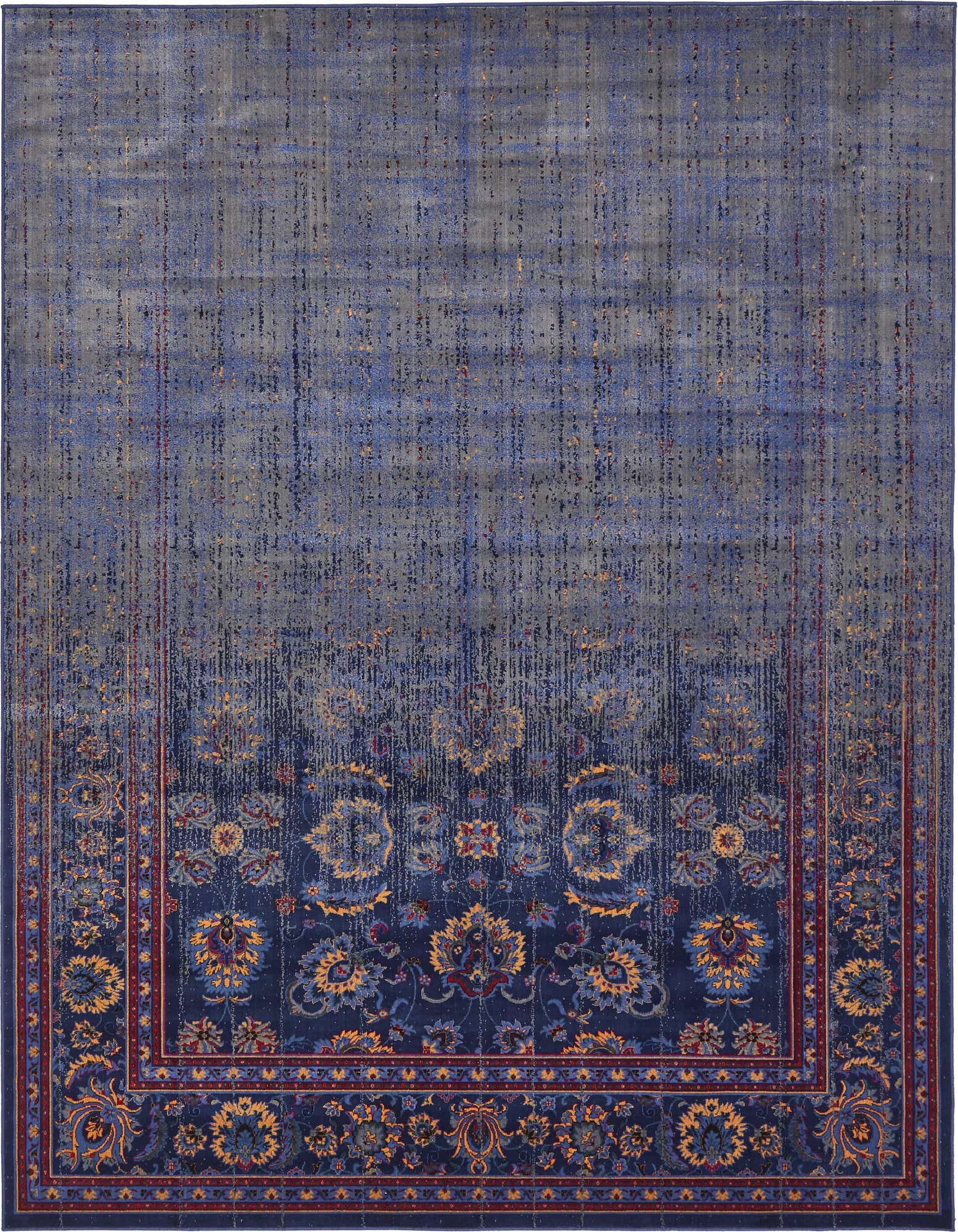 Primary color is Navy Blue. Colors in this rug include: Navy Blue, Cream, Gray, Light Blue, Red, Tan.