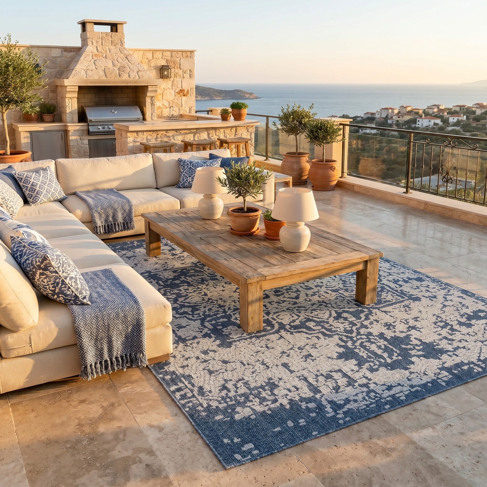 7' 10 x 10' Easy-Clean Traditional Indoor / Outdoor Rug