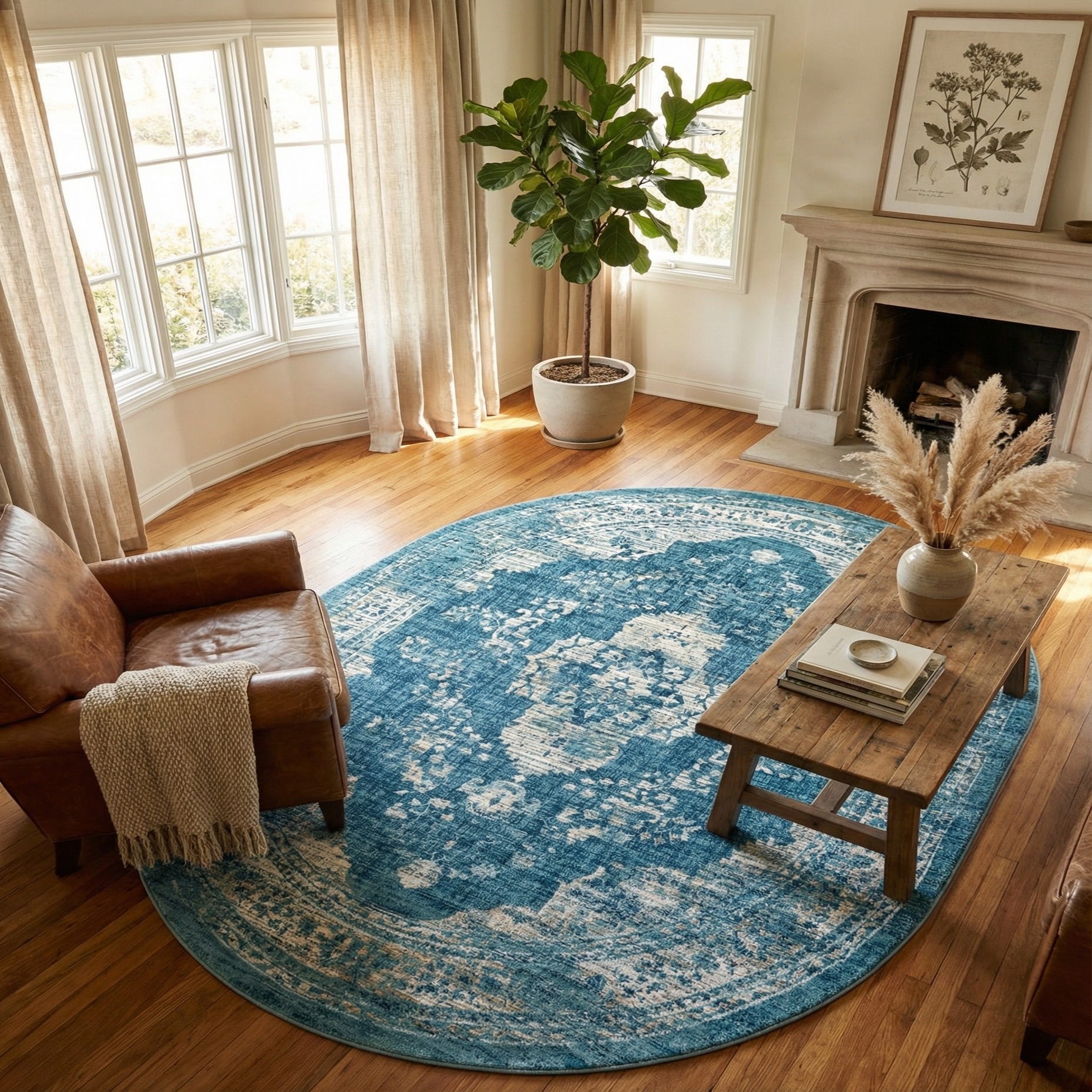 Machine-made from 100% polypropylene, the rug has a low-profile, softly textured surface that feels pleasant underfoot and lays flat beneath furniture. Its oval shape is ideal for anchoring a round or oval dining table, shaping a seating group in a living room, or adding warmth to an entry or bedroom. Pair it with warm wood tones and neutral upholstery for a classic look, or use it to add depth and contrast in coastal, transitional, modern farmhouse, or softly traditional interiors.