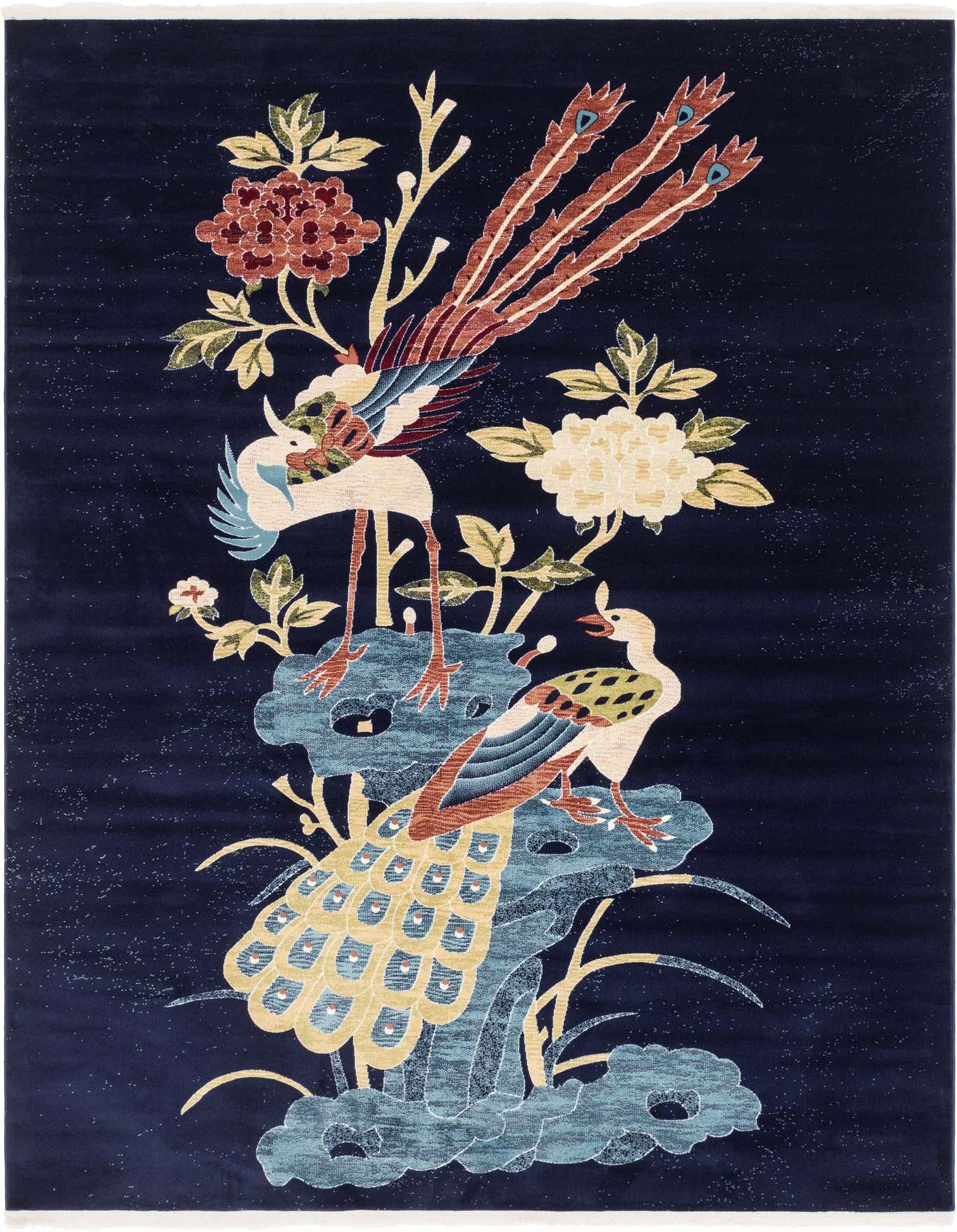 Primary color is Navy Blue. Colors in this rug include: Navy Blue, Blue, Tan, Pink, Red, Olive, Burgundy, Ivory.