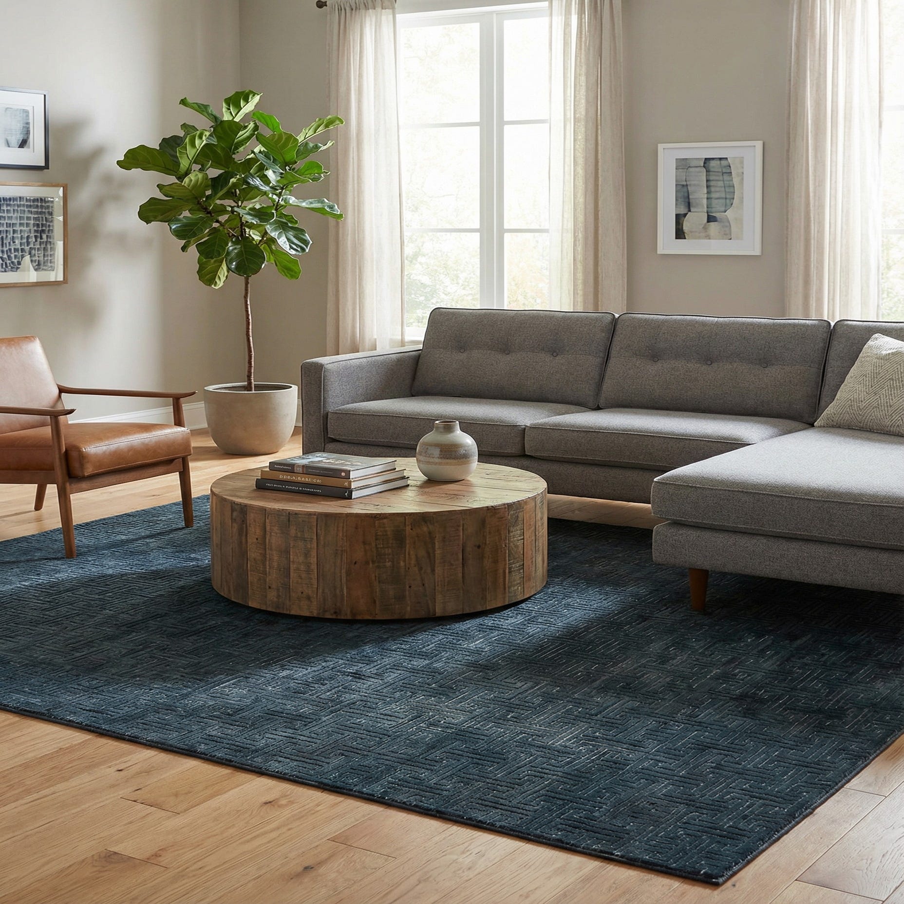 Ideal for anchoring living spaces, this rug would complement an array of interior design themes, from modern minimalist to coastal chic, due to its versatile colors and simple design. Placed in a family room, it could handle the high traffic while maintaining its elegant appearance. Additionally, this piece could serve as a grounding element in a home office or study, where its serene palette would not distract from a focused work environment.