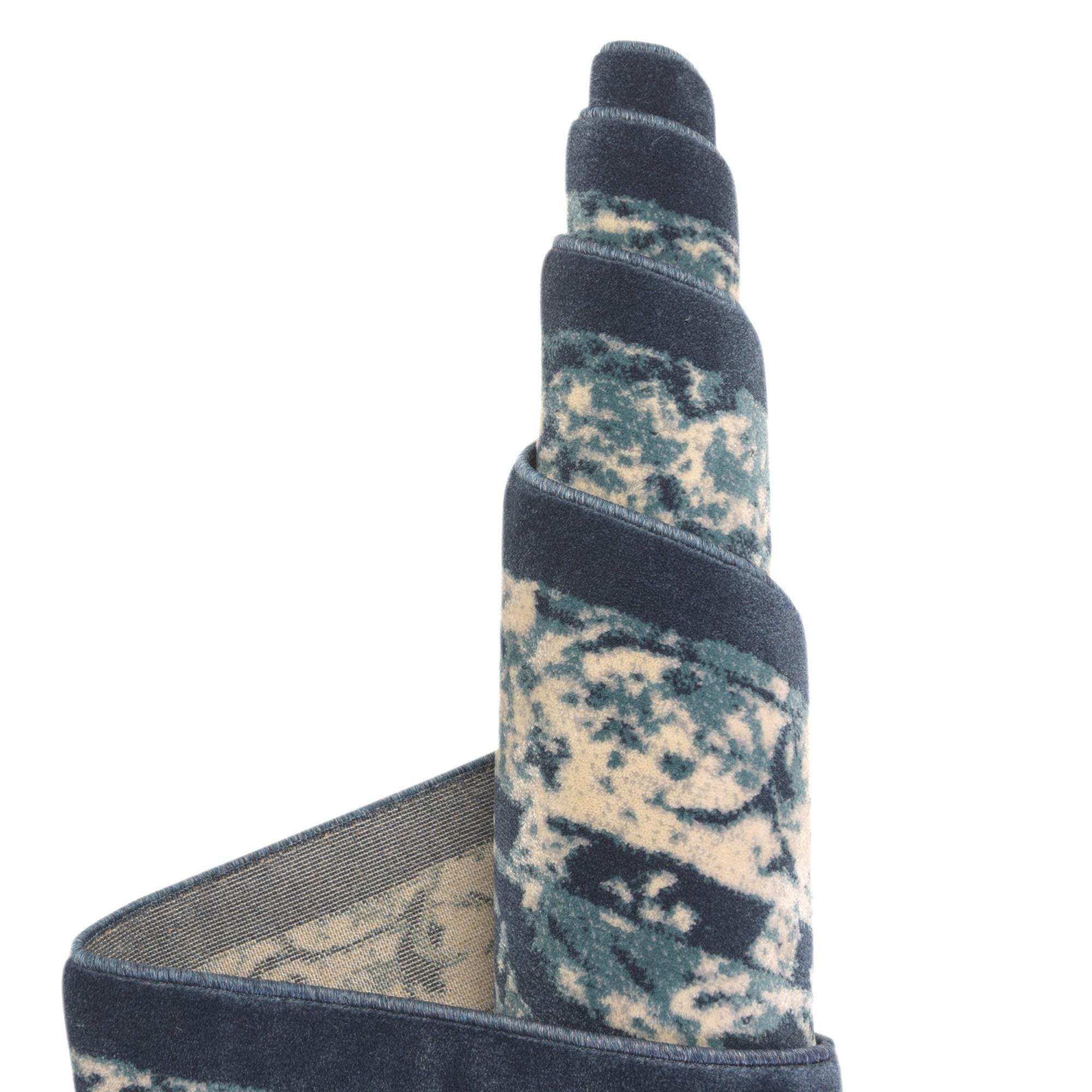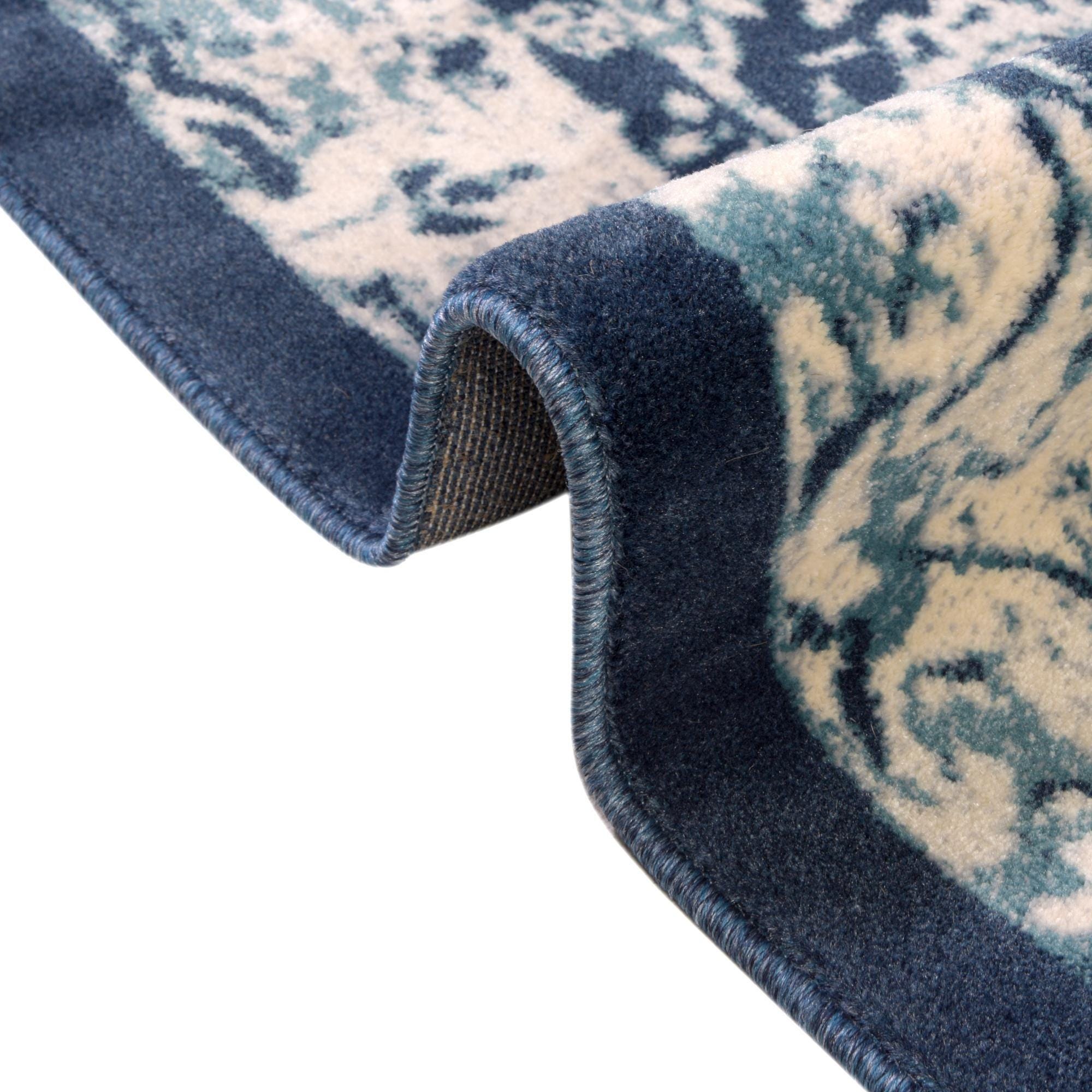 Primary color is Navy Blue. Colors in this rug include: Navy Blue, Beige, Gray, Light Blue.