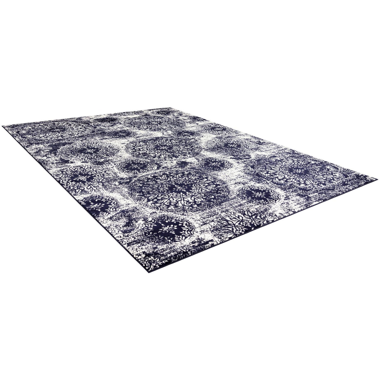 Primary color is Navy Blue. Colors in this rug include: Navy Blue, Ivory.