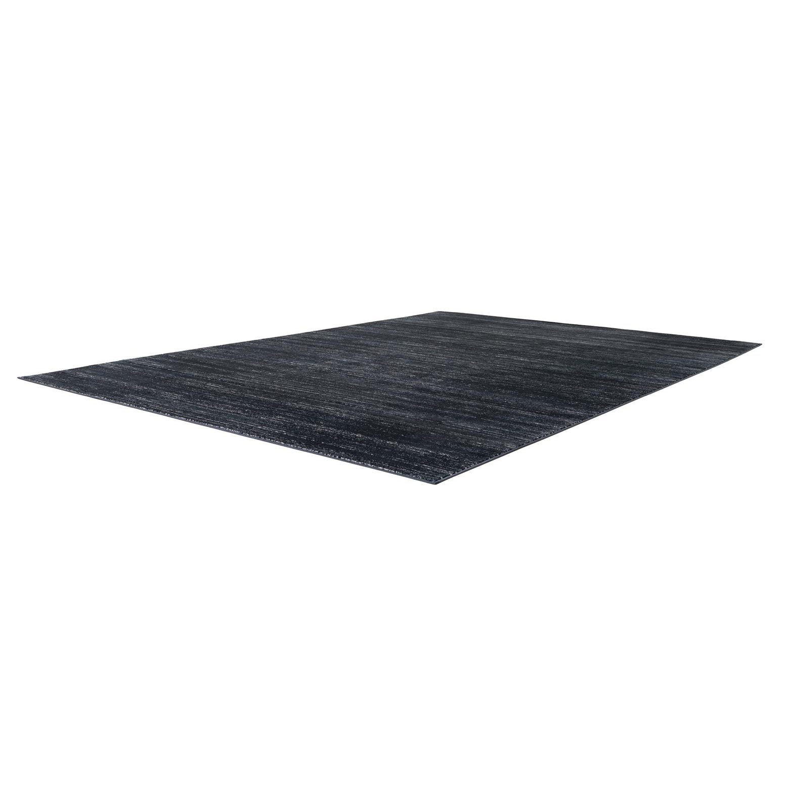A deep navy ground threaded with irregular ivory flecks creates a refined, heathered linear pattern across this machine-made rug. Fine horizontal striations give the surface subtle movement and a low?profile texture that feels smooth underfoot. Woven from 70% polypropylene and 30% polyester, the construction produces a softly cushioned hand with a slight sheen from the polyester yarns that brightens the navy without overpowering it.
