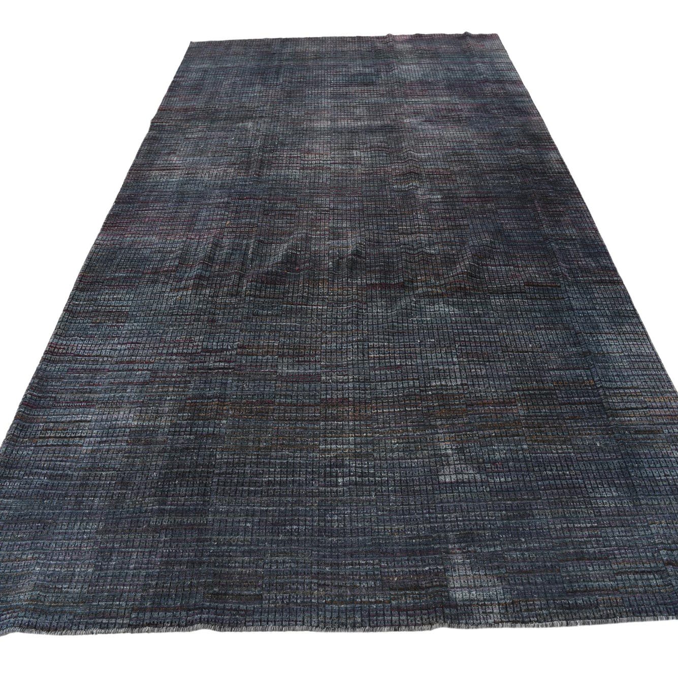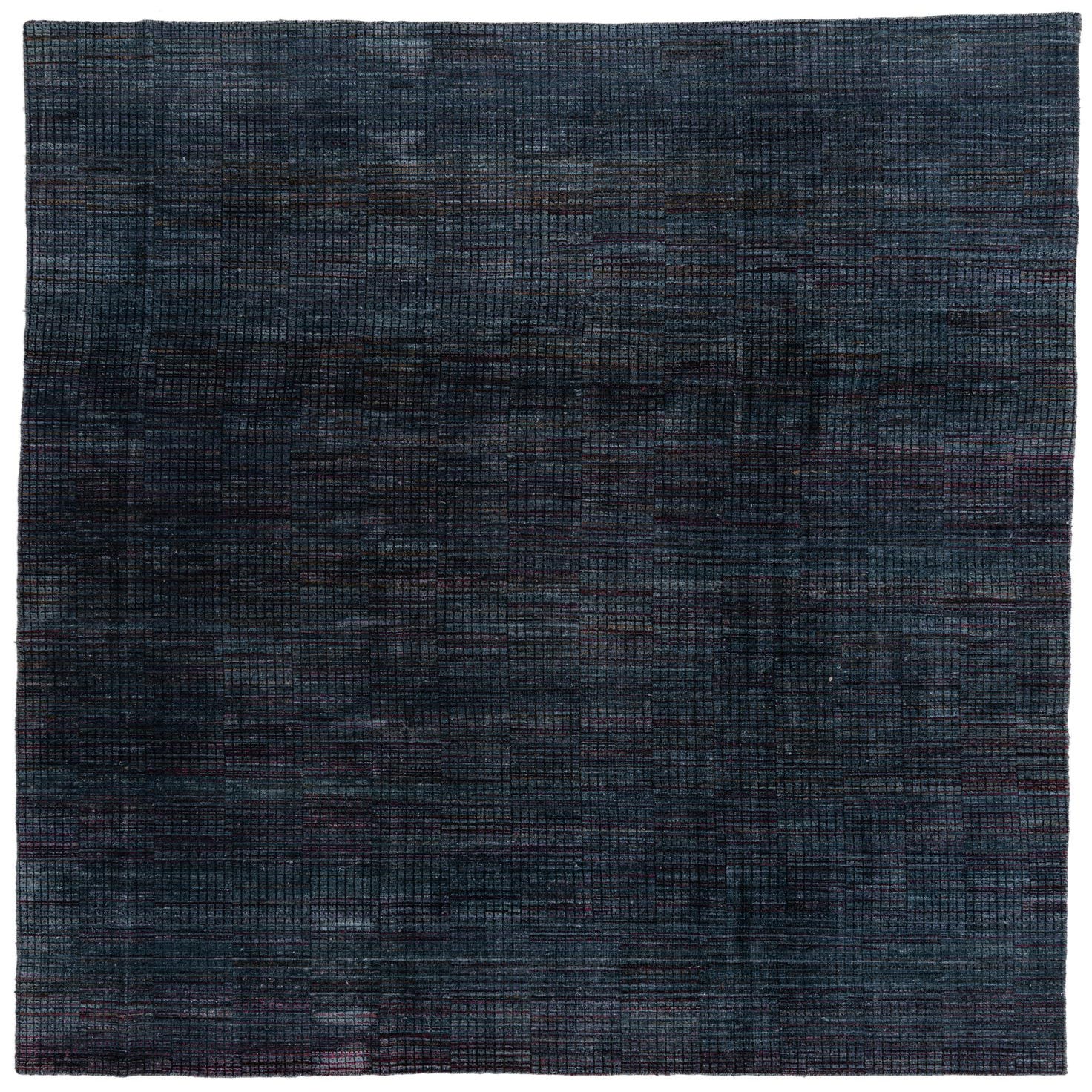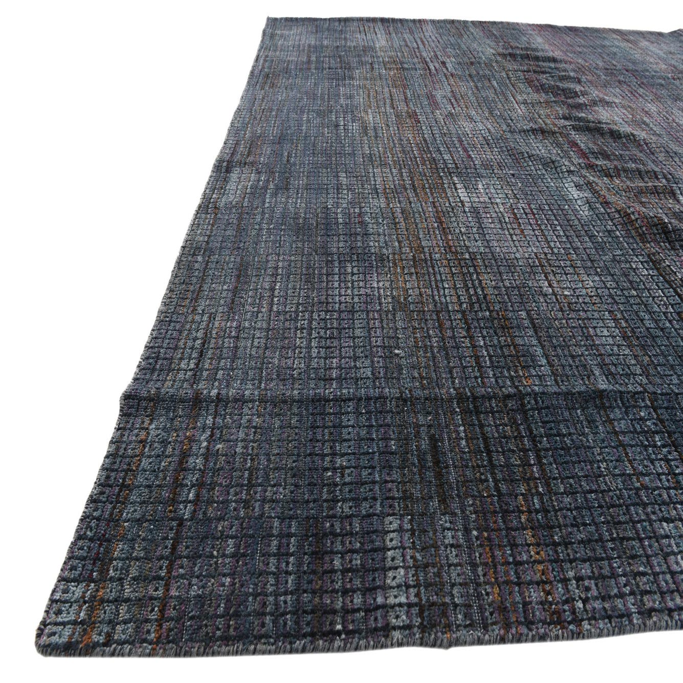 A 9x12 rectangular Darya rug in varying shades of blue and hints of red, featuring a modern textured pattern, suitable for a living room.