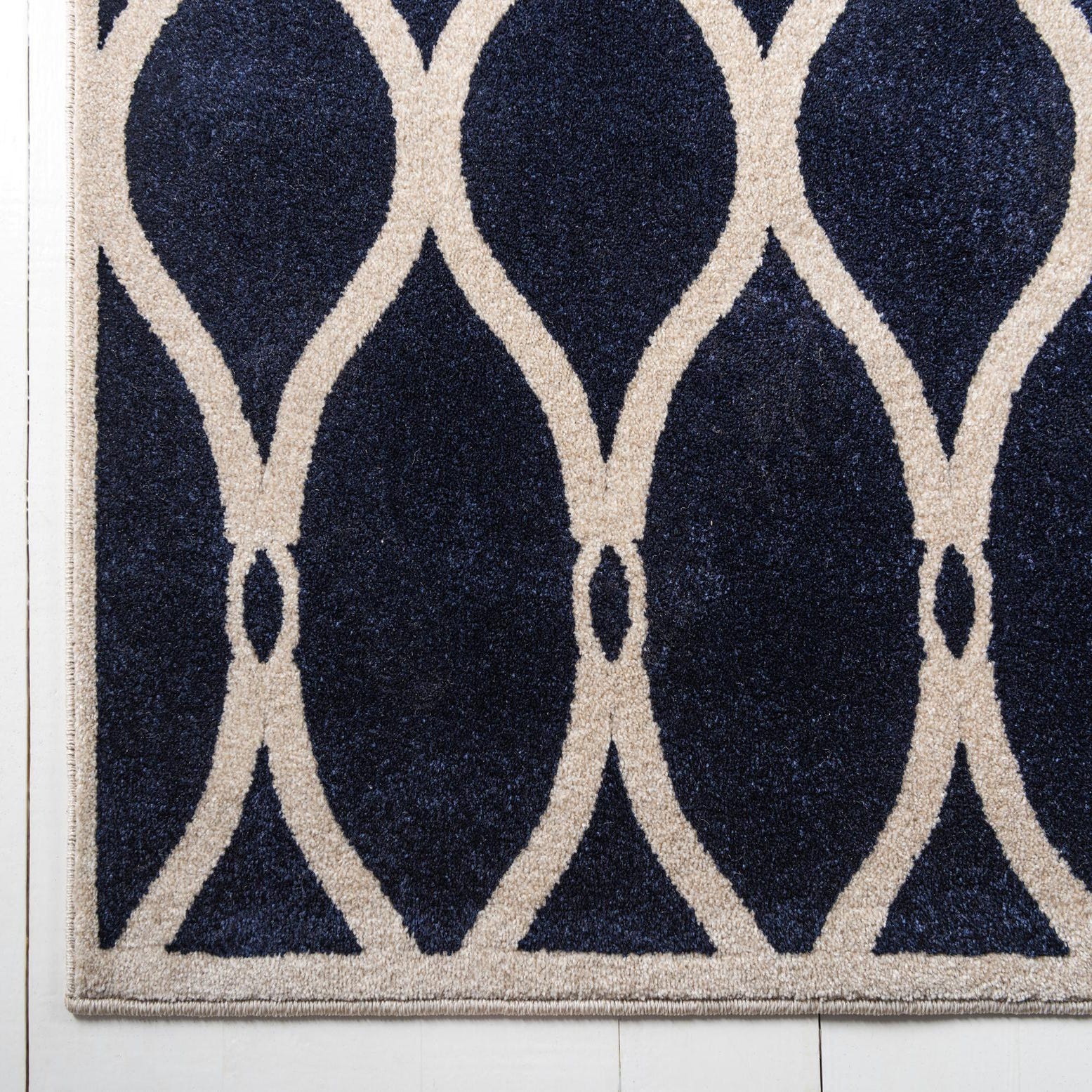 Primary color is Navy Blue. Colors in this rug include: Navy Blue, Cream.