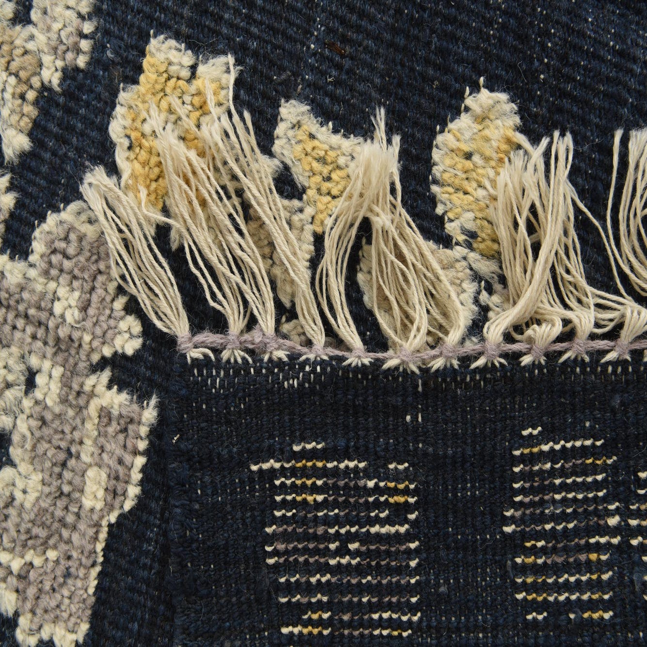 Primary color is Navy Blue. Colors in this rug include: Navy Blue, Gray, Ivory, Light Brown.