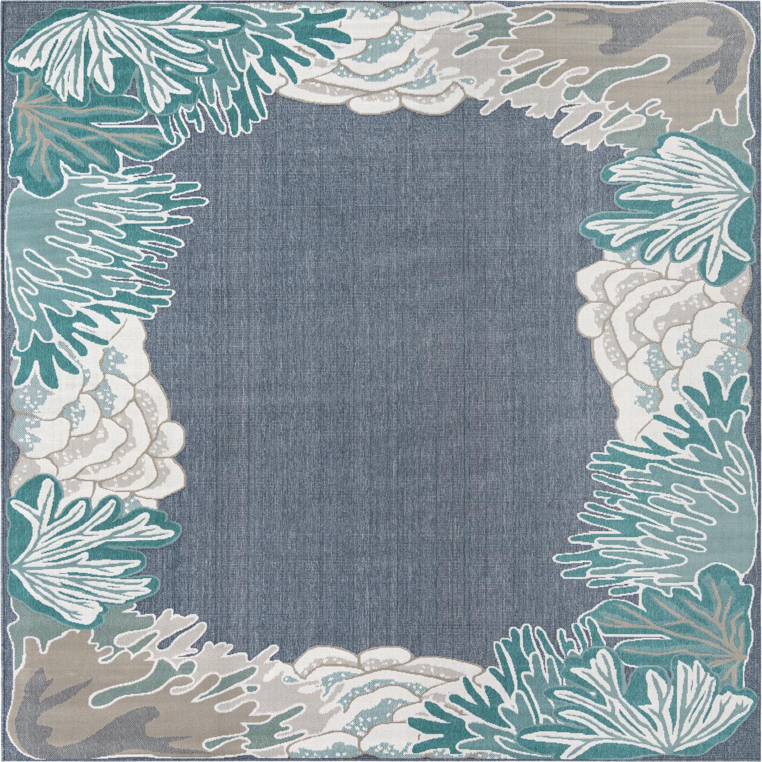 The bold yet subdued color palette allows this rug to complement a variety of décor styles, particularly suitable for coastal, contemporary, or nautical themes. Its large size can define seating areas on patios or provide a foundation for garden lounge spaces. Whether paired with outdoor furniture in wood, wicker, or metal, the rug's design can act as an understated focal point or as an integral component that ties together the colors and textures of exterior decor.