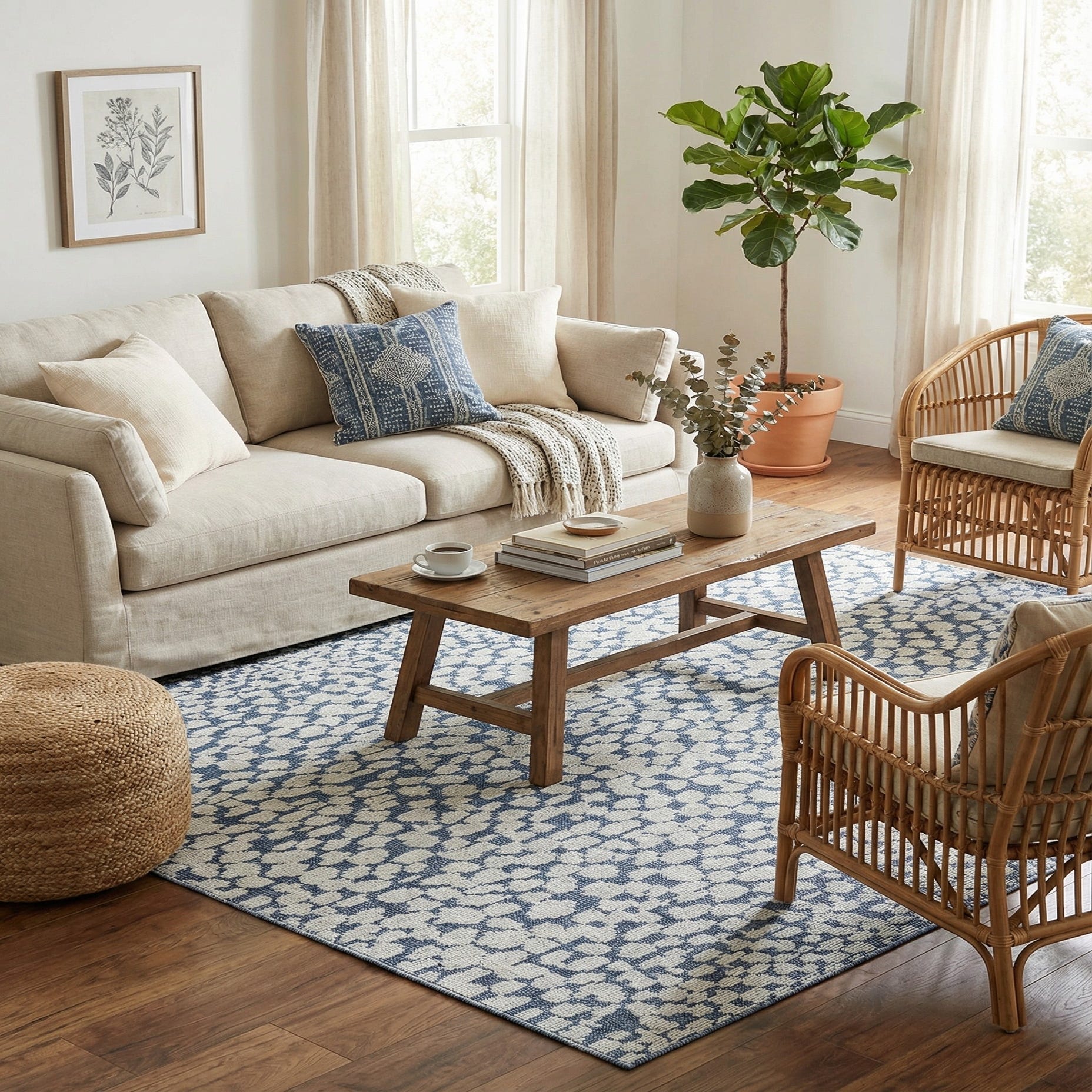 The texture of the rug is designed to withstand outdoor elements while still being comfortable underfoot. Its flatweave construction ensures a smooth profile, allowing for easy placement of furniture and seamless integration into a variety of decor themes.