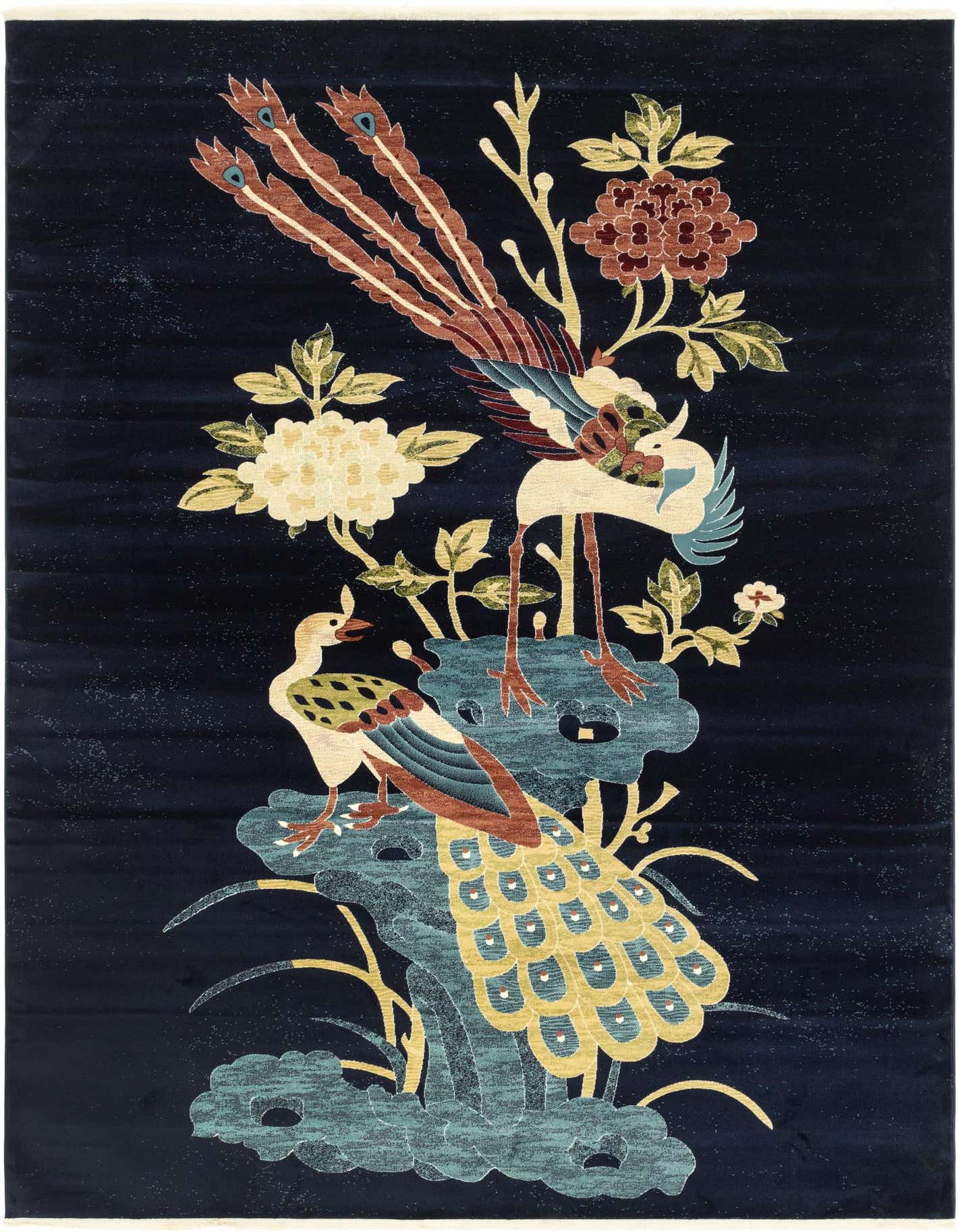 Primary color is Navy Blue. Colors in this rug include: Navy Blue, Blue, Tan, Pink, Red, Olive, Burgundy, Ivory.